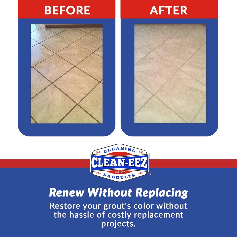Transform your grout and tile surfaces with Clean-eez, the ultimate grout cleaner. Say goodbye to years of dirt and grime frustration with this professional-grade cleaner that effortlessly revitalizes your grout, delivering remarkable results and restoring its original appearance. No need for costly renovations; Clean-eez offers vibrant grout renewal that saves you time, money, and hassle. Plus, our innovative handheld brush, tailored for showers and tight spots, makes cleaning a breeze with v-shaped bristles and an ergonomic handle. Don't settle for dingy surfaces – choose Clean-eez for a fresh, brand-new look in your bathroom or kitchen. Powerful Grout Cleaning: Experience the ultimate solution with Clean-eez! Our professional-grade cleaner effortlessly removes years of dirt and grime from grout, ensuring frustration-free cleaning without compromise. 2-in-1 Cleaning Marvel: Transform both your tiles and grout to their original glory with Clean-eez's all-in-one cleaner. Say goodbye to dingy surfaces and hello to a fresh, brand-new look that'll leave you amazed! Remarkable Grout Revival: No dirt or grime is too stubborn for Clean-eez. Our innovative formula penetrates deep, delivering remarkable results that restore your grout's pristine appearance, saving you from costly renovations. Vibrant Grout Renewal: Why replace when you can rejuvenate? Clean-eez helps you save time, money, and the hassle of renovation by breathing new life into your grout. It's the smart choice for a vibrant, clean bathroom or kitchen. Innovative Handheld Brush: Cleaning tight spots and showers has never been easier! Clean-eez comes with a specially designed handheld brush featuring v-shaped bristles and an ergonomic handle for effortless, effective cleaning. Say goodbye to scrubbing woes!