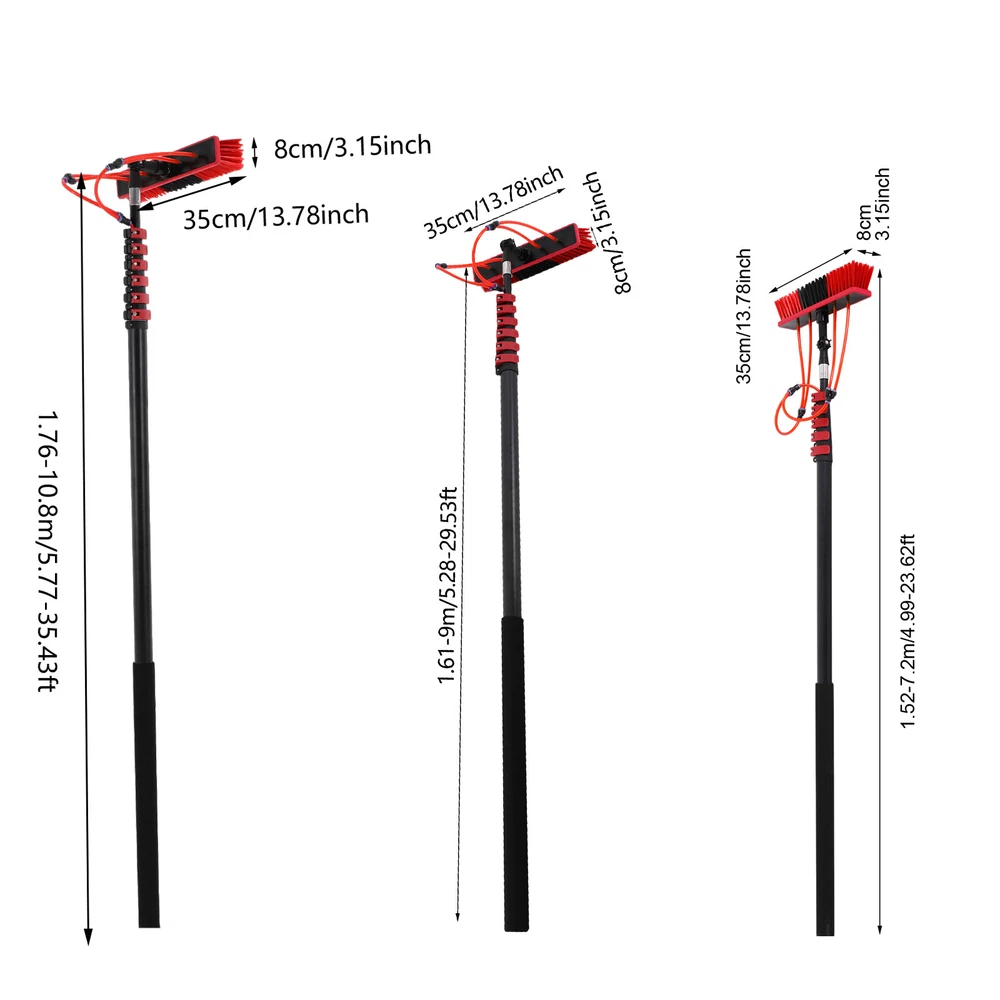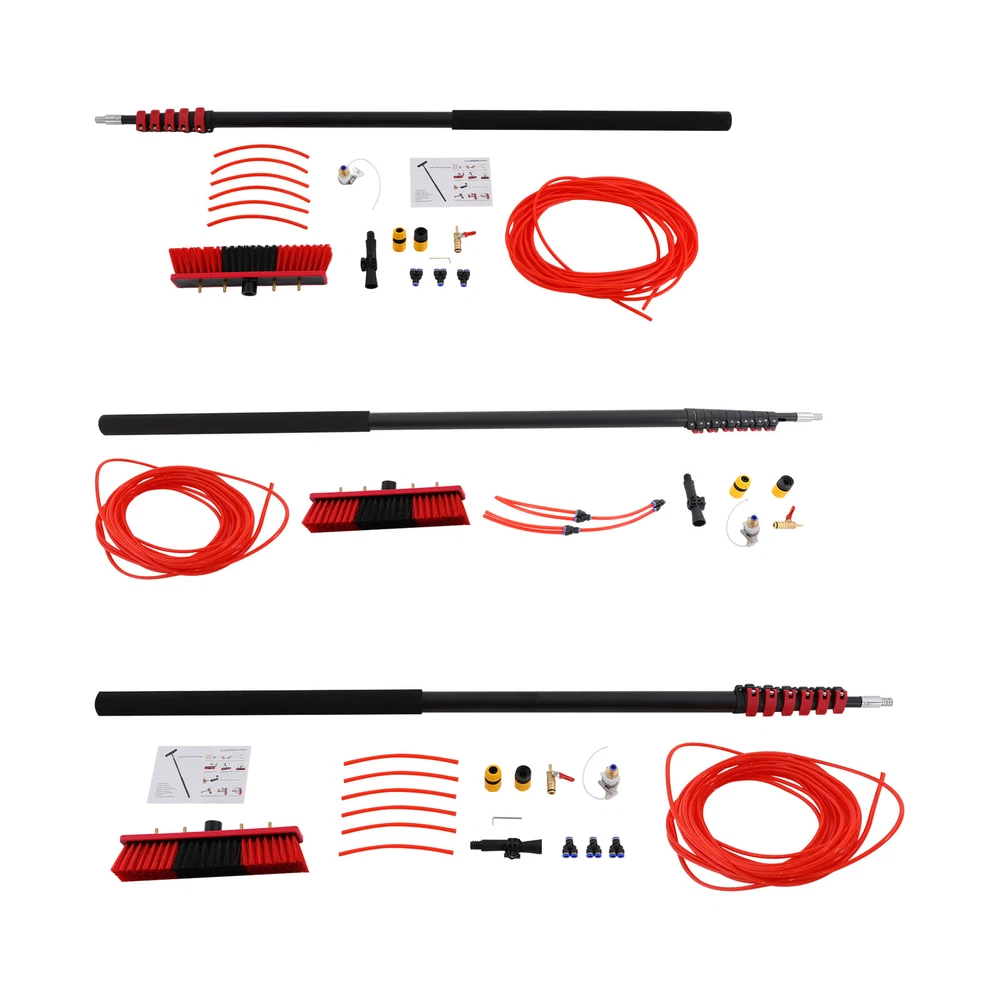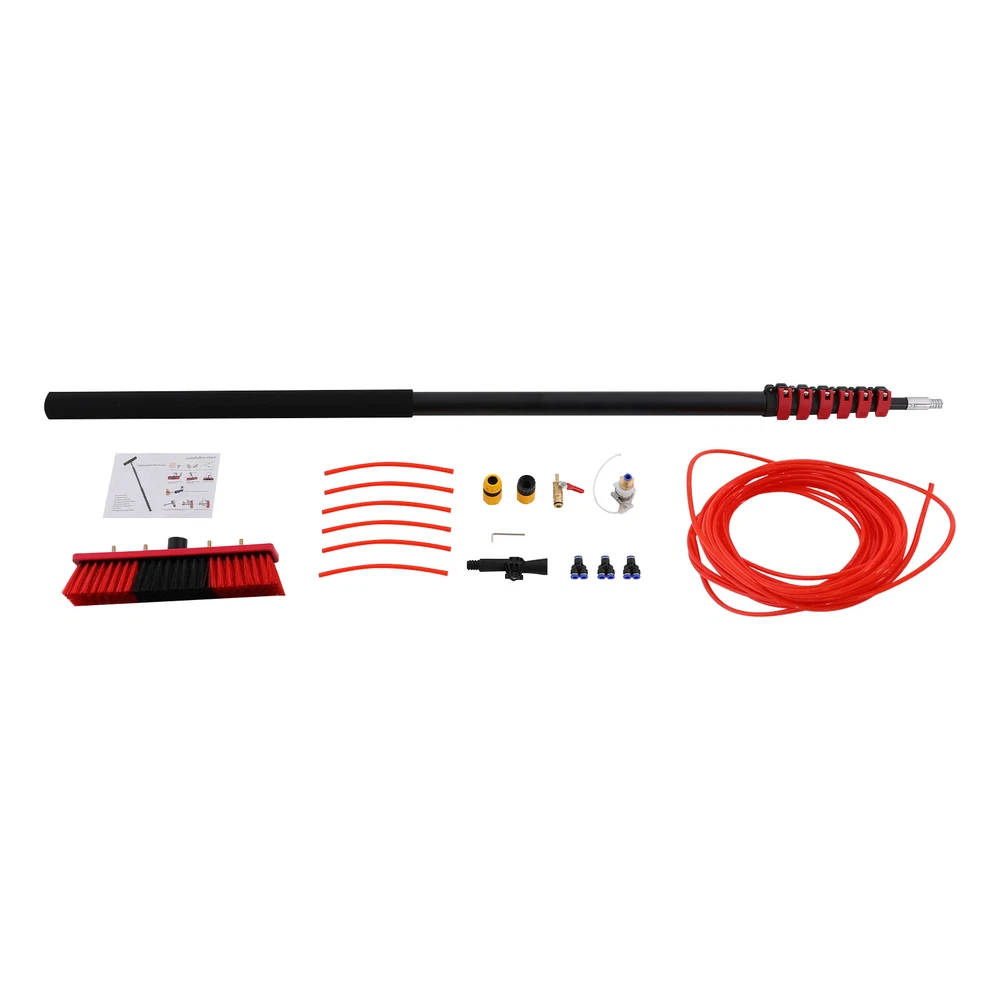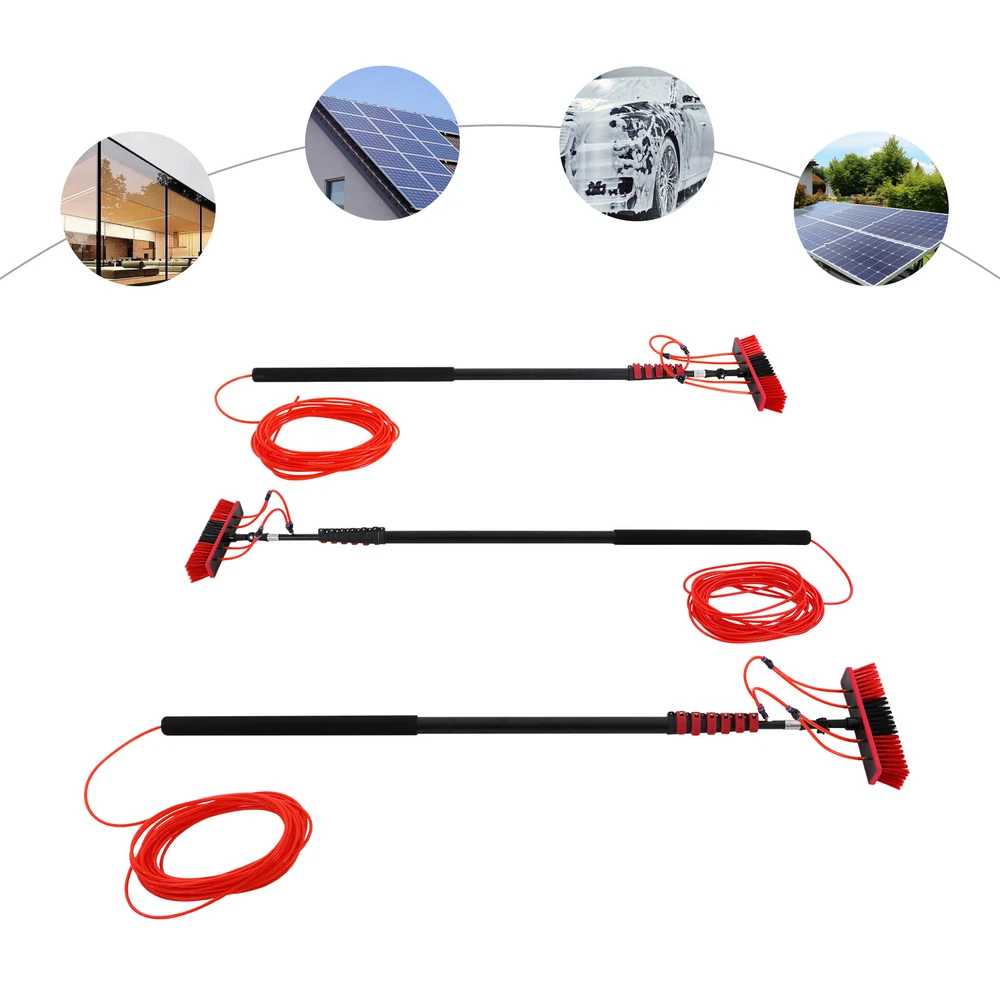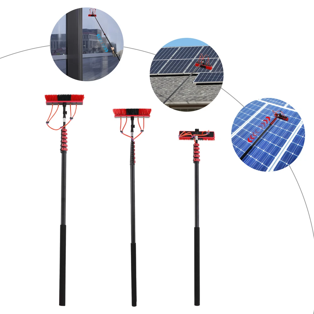 Cleaning Brush Kit for Solar Panel, Window Cleaning Equipment, Window Cleaning Description If you are still worried about high-altitude cleaning, then our window cleaning pole kit is designed to solve your troubles. High-class materials make it sturdy and durable. The length of the pole can be adjusted, meeting cleaning needs at different heights. Its brush head can rotate 180 °, making it convenient for you to use. In short, it will be your cleaning assistant! Key Features Build to Last: Made of aluminum alloy, this product is impact-resistant , rust-resistant , and durable, ensuring your long-term use. Rotatable Design: The brush head with four water outlets can rotate 180° , allowing you to clean up easily the dust and stains in every corner or uneven surface . Adjustable Length: The length of the pole can be adjusted between 5.77-35.43 ft/5.28-29.53 ft/4.99-23.62 ft, meeting cleaning needs at different heights such as taller windows and facades. You can do many high-place cleaning tasks without ladders just with extension and retraction by adjustable clamps. Easy to Assemble: The simple structure, complete accessories, and English manual allow you to quickly assemble and connect this product and enjoy the joy of assembly. Comfortable User Experience: The rubber cotton handle provides you with a comfortable grip, so you won't feel tired even after prolonged use. Simple Cleaning: It has a smooth surface and a simple structure, so you only need to wipe the dust or residue with a towel after use. Ideal Gift: This practical product will be a wonderful surprise for your family or friends who often do cleaning work , bringing convenience to their work. Buy with Confidence: We are honored that you have chosen our product. We have sufficient confidence in the quality of the product so that you can buy it confidently. But if you have any questions, you can contact our customer service, he will patiently answer and solve your problems. Details Water Pipe: The 65.62 ft water pipe easily meets the flush cleaning needs at different heights. Detachable Brush Head: It allows for easy replacement at any time, which is convenient and user-friendly. Soft PP bristles help you clean more evenly and cleanly. Application It is suitable for house roof cleaning, solar photovoltaic panel cleaning, and cleaning cars, trucks, vans, windows, boats, decks, etc. Specifications Color: Black, Red Material: Aluminum Alloy, Rubber Cotton, PP Assembly Required: Yes Adjustable Brush Head Angle: 180 ° Brush Head Size: 35*8cm/13.78*3.15in Water Pipe Length: 20m/65.62ft JKEJEI-000200: Adjustable Pole Length Range: 1.76-10.8m/5.77-35.43ft Package Size: 176*11*14cm/69.29*4.33*5.51in Gross Weight: 5kg/11.02lbs Net Weight: 4kg/8.82lbs JKEJEI-000600: Adjustable Pole Length Range: 1.61-9m/5.28-29.53ft Package Size: 161*11*14cm/63.39*4.33*5.51in Gross Weight: 4kg/8.82lbs Net Weight: 3kg/6.61lbs JKEJEI-000700: Adjustable Pole Length Range: 1.52-7.2m/4.99-23.62ft Package Size: 155*11*14cm/61.02*4.33*5.51in Gross Weight: 3kg/6.61lbs Net Weight: 2kg/4.41lbs Package Included 1* Window Cleaning Pole 1* Brush Head 1* English Manual 1* Water Pipe Other Accessories for Assembly Notes Please read the English manual carefully when installing. Please allow the slight color difference caused by the shooting light and 1-3cm error due to manual measurement, and make sure you do not mind before you order. Payment Delivery details Terms of sales About us Contact us Payment We accept ebay payment 。 Fees such as import duties, taxes are not included in the item price or shipping costs. These charges are the buyer's responsibility. Delivery details Shipping: 2-9 working days to: USA Terms of sales We maintain high standards of excellence and strive for hundred percent customer satisfaction. Feedback is very important to us. We hope that you contact us immediately before you give neutral or negative feedback, so that we can address your concerns. It is impossible to address issues if we do not know about them! About us Your satis faction is our ultimate goal. We work hard to earn your trust and future business. Our certified technicians have tested each item before shipping. The unit comes with 1 year limited warranty on all manufacturing defects. a) If you receive a defective item, you may return it or ask for a discount. Please contact us within 14 days after you receive the package. b) What you returned must be intact and in its original packaging as re? u. Customer is responsible for shipping costs of the returned item. c) We will cover the cost of shipping back t with the shipping rate indicated in the registration page. We will send you a new unit or refund the full payment you paid. Thank you. Contact us Business Hour Business Hour: Monday To Friday: 8:30 AM to 5:00 PM (Beijing China time) Due to time zones, our reply to your questions may not be immediately. But within above working time, we will reply your email within 24 hours. If it's non-workdays, please kindly be patient and wait till Monday. Please contact us with ebay message. Please feel free to contact us if you have any questions. Monday To Friday: 8:30 AM to 5:00 PM (Beijing China time) Due to time zones, our reply to your questions may not be immediately. But within above working time, we will reply your email within 24 hours. If it's non-workdays, please kindly be patient and wait till Monday. Please contact us with ebay message. Please feel free to contact us if you have any questions. Brand Unbranded Type Window Cleaning Brush For Windows Material Aluminum Alloy, Rubber Cotton, PP Handle Material Aluminum Alloy Adjustable Brush Head Angle 180 ° Water Pipe Length 20m/65.62ft Brush Head Size 35*8cm/13.78*3.15in On Feb 5, 2025 at 18:33:27 PST, seller added the following information: