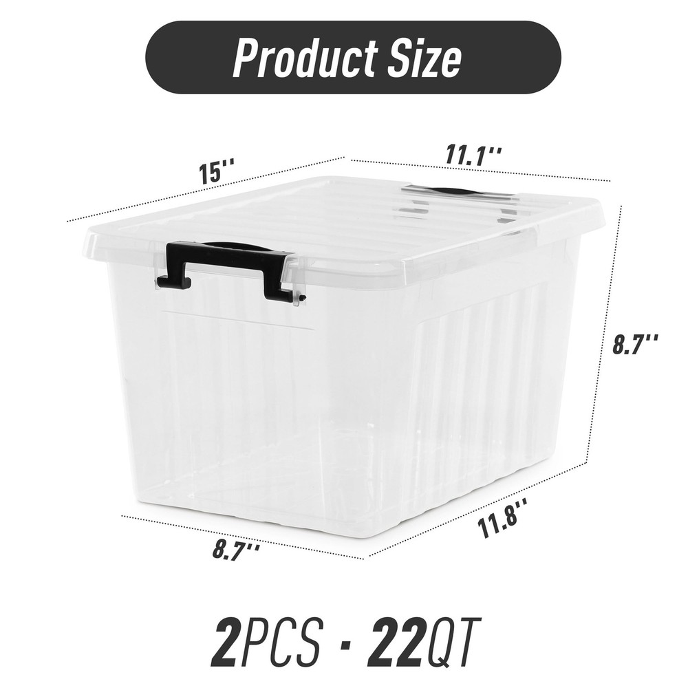 【Home Storage Solutions】Citylife storage bins with lids are Ideal storage solutions for your family's various belongings. Suitable for storing out-of-season clothes, linens, shoes, holiday decorations, crafts, and other bulky items around the home. 【Stackable & Nestable】Plastic storage bins are stackable when storing items. Units nest when not in use. The deep recessed lids provide stability when stacking for efficient use of vertical storage space. 【High Transparency】This clear design not only keeps the appearance neat and clean but also makes it easy to find and access your frequently used items. 【Large Capacity】 Package includes 2 x 22 quarts storage bins measuring 15 "L x 11.1 "W x 8.7 "H, perfect for large storage needs in closets, garages, bedrooms, basements, offices, and more. 【Superior Quality】Made of premium durable PP5 plastic, strong and durable. No-odor, and No-BPA. Not only are these storage containers with lids functional, but the secure lids and locks provide extra protection to keep your home clean and tidy.