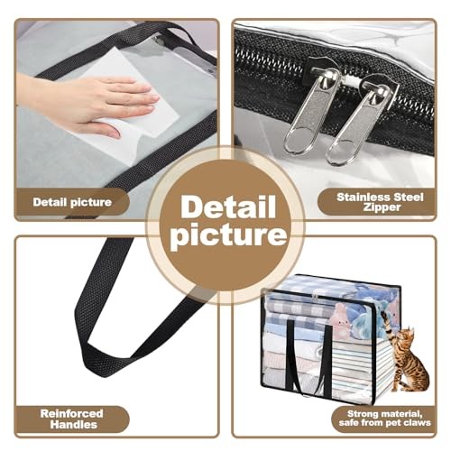 Return Policy Fast Delivery Trusted seller 1 Pack Clear Blanket Storage Bags, 40L Clothes Storage Bags with Zipper, Vinyl Moving Bag Closet Organizers and Storage Containers for Bedding, Comforter, Pillow Product Description Heavy Duty PVC Material: The clothing storage bag is made of sturdy and durable heavy duty PVC material which is very thick, cut and abrasion resistant, as well as water, stain and dust resistant. It protects clothes better than other ordinary plastic bags Product Size: Set includes 4 clear storage bags, each measuring 18.1'' (46 cm) x 9.1''(23 cm) x 15 '' (38 cm) with a 40 liter/8.8 gallon capacity.These plastic tote storage bags can store bulky items such as sheets, towel, blankets, quilts, seasonal clothing, sweater, pillows and even Christmas gifts Reunforced Handles & Zipper: The handle is reinforced with densely woven seams for greater strength and double the weight capacity. Stainless steel two-way zipper, very strong and smooth, no matter how full it is, the two-way zipper slides easily without getting stuck. The zipper closes tightly to keep dust and insects out. The zipper storage bag is definitely the first choice for storage, transportation and moving Organize Multiple Items: Not only can you store clothes, quilts, blankets, pillows and other bedding, but also books and holiday decorations. Can be placed in bedroom closet, under beds, rack shelf, dormitories, attics, basements and many other spaces Visible Design: The transparent design is easy to see at a glance what you are storing. You can easily find what you want without opening the organizer. Our underbed storage containers will help you keep your home tidy and save space Shipping Returns Payment Shipping Shipping is FREE to all addresses other than APO/PO boxes in the lower 48 states. All our stock ships from US-based warehouses. Shipped via USPS or UPS (depending on location and package weight) Unless stated otherwise, all orders will ship within 24-72 hours of your payment being processed. Check our feedback to see the great reviews of FAST shipping we offer. Returns Seller does not accept returns Payment We currently accept payment via eBay managed payments only. Once payment is cleared, we will dispatch your shipment within 1-3 business days. Please refer to the "Shipping" tab for more information regarding shipping speed to your destination.