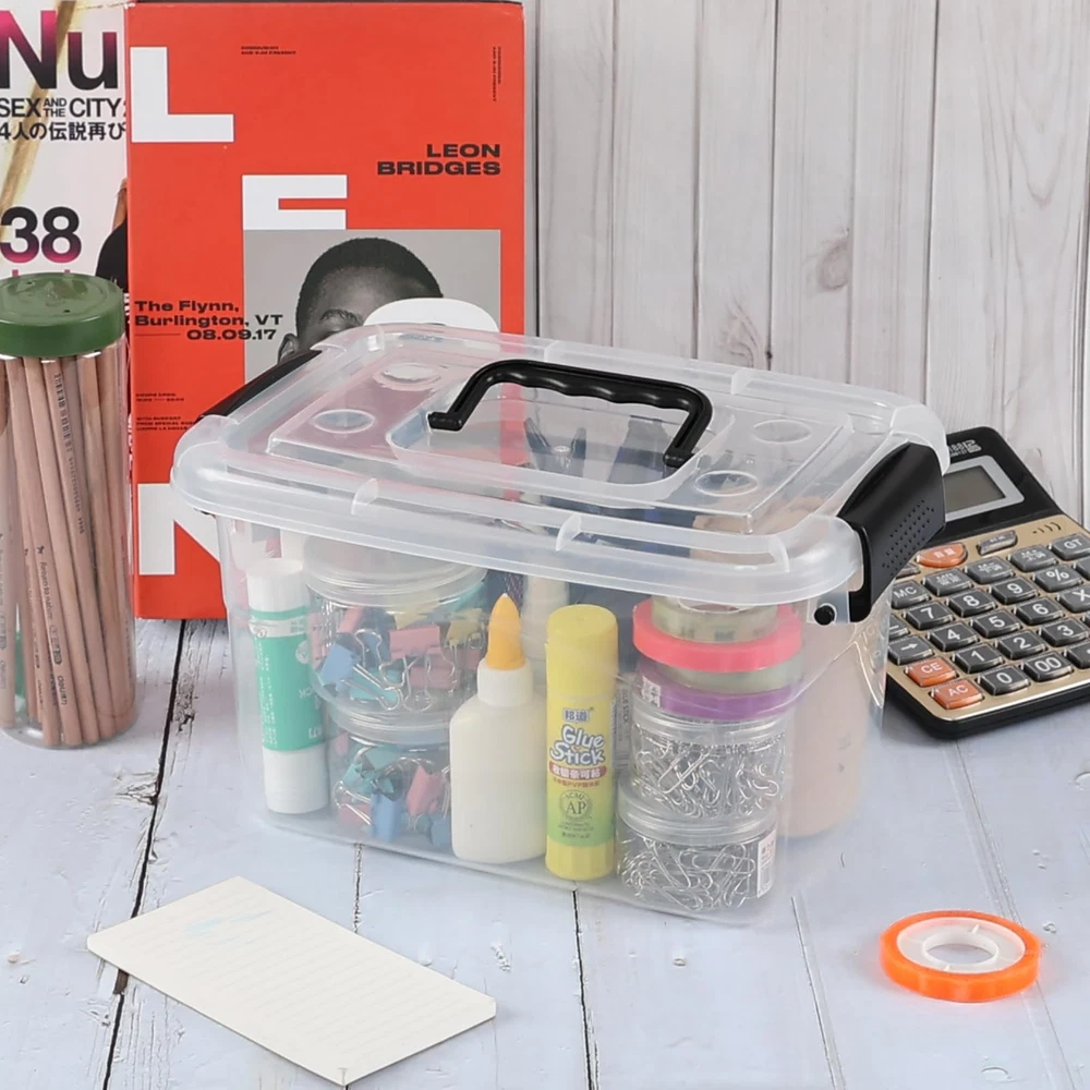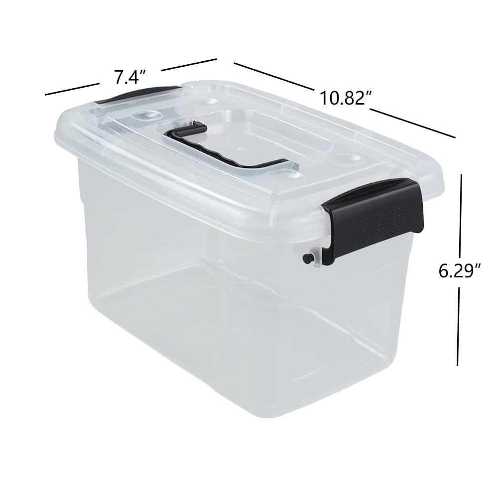 Size: 10.82" x 7.4" x 6.29" Made of solid plastic material, strong, high quality, and easy to clean The clear appearance makes the items in the box clearly visible, and you can find the items quickly and easily The latches on both sides can tightly lock the lid and keep the contents clean Suitable for storage of small items, such as candies, medicines, CDs, etc.