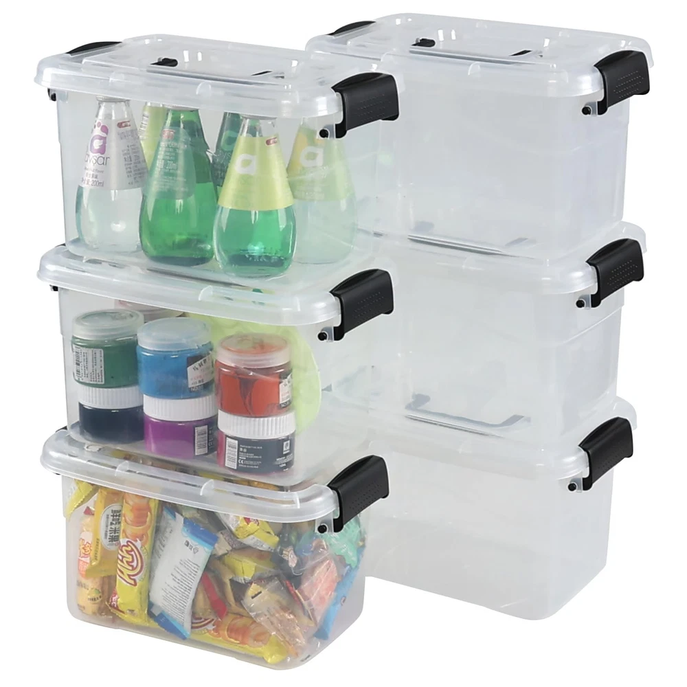 $ 30.193 Packs Clear Lidded Storage Bin, Plastic Stackable Storage Container Black