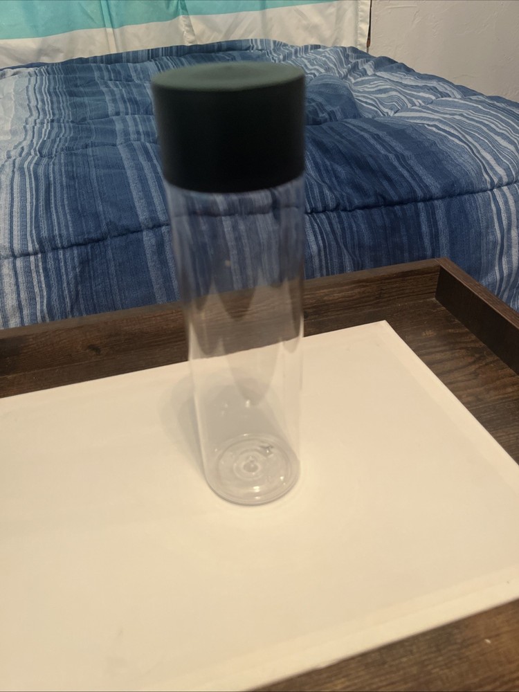These clear juice or water bottles with black lids are perfect for all occasions. Standing at 8 inches tall, these round bottles are made of durable plastic and feature a convenient lid to keep your drinks fresh. With a set that includes juice glasses, these bottles offer a sleek and modern design that is ideal for serving up to 10 people. Whether you're hosting a party or just need a stylish and practical drinkware option, these bottles are a versatile choice for any event.