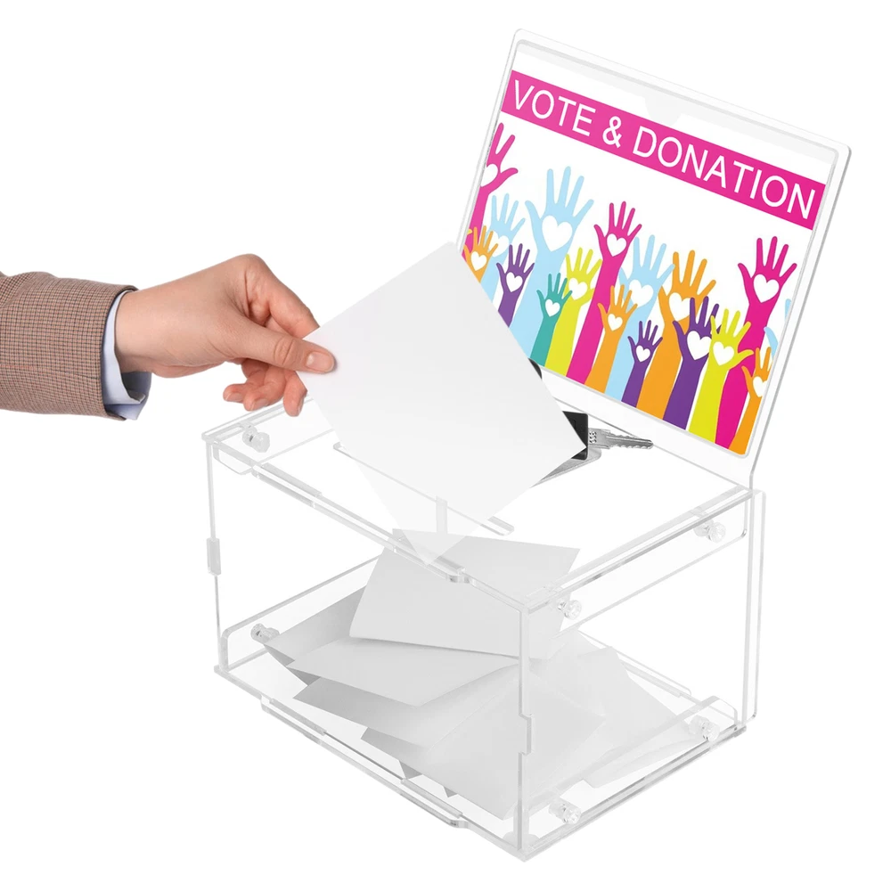 Clear Acrylic Donation Box Ballot Box Charity Box With Lock And Keys Bullet Points: Easy Operation: Empower your cause with the acrylic donation box featuring a convenient sign holder. Seamlessly mark relevant activity info and enhance event theme awareness. Clear Visibility: Our transparent acrylic donation box boasts a crystal-clear design that allows for unobstructed visibility, ensuring absolute transparency throughout the donation process. Ensure Donation Privacy: Safeguard the confidentiality of donations with a sturdy lock and two keys on this transparent acrylic donation box, allowing for secure contributions. Reliable Strength: Our donation box is made of thick, scratch-resistant, and wear-resistant acrylic material, guaranteeing unsurpassed resilience. The box is also lightweight, making it effortless to gather funds for your cause while maintaining transparency and durability. Multi-functional Uses: Elevate your tips collection game with our acrylic donation box. Perfect for classroom voting, ticket raffles, tips collection at cafes, storing business cards, and much more. This Acrylic Donation Box comes with a Sign Holder and provides complete visibility to display your message. Made with thickened acrylic material to ensure the confidentiality of information. Perfect for charities, churches, schools, and events. Specifications: Name: Acrylic Ballot Box Color: Transparent Product size: After assembly: about 16.5*11.5*11cm/6.5*4.5*4.3inch Packing List: 1pc * Acrylic Suggestion Box Notes: 1. Due to the lighting effects and photographing angles, there is a color difference in the product, please understand. 2. Due to manual measurement, there is a tolerance in the product size. 1.You can make a Credit payment via Paypal.Paypal will let you use MasterCard,Visa to pay. 2.Payment should be completed within 5 days after auction closed, or unpaid dispute will be filed for an closing auction.An unpaid case will be filled after 4 days. ● We strive for 100% customer satisfaction ! ● Positive Feedback is very important to us. ● We hope that you contact us immediately BEFORE you give us neutral or negative feedback, so that we can satisfactorily address your concerns. ● We promise to offer the lowest price and high quality produce. Dear buyers : ● Welcome to my store ! ● Your satisfaction is our top goal,we appreciate your patronizing. ● If you have any questions, please contact us before leave negative or neutral feedback, we will try our best to solve the issue to your satisfaction, thanks ! ● If you are satisfied with our service, please rate the details of the transaction (Detailed Seller Ratings) on eBay. ● Please always talk to us via ebay Message. ● We appreciate your business and look forward to growing our e-Bay sales with satisfied customers.
