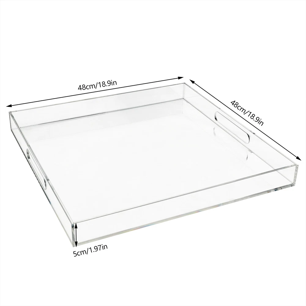 Specification Color: Transparent Shape: Square Style: Modern Material: Acrylic Net Weight: 2.2kg/ 4.85lbs Gross Weight: 2.5kg/5.51lbs Product Size: 48*48*5cm/18.9*18.9*1.97inch Thickness of Product: 5mm/0.2inch Size of Handle: 100*30mm/3.94*1.18inch Package Size: 49*49*5.5cm/ 19.3* 19.3*2.17inch Package Included 1*Serving Tray ๐ WELCOME ๐ Description A tray is a good helper in our daily life. This serving tray is made of transparent acrylic, which is sturdy and durable, so you can use it for a long time. With a variety of uses, this serving tray can meet various needs in your daily life, such as placing food, storing small items. It will be a good choice for you! Key Features High-end Material: This product is made of transparent acrylic, which is sturdy, durable, and can be used for a long time, saving your use cost to a certain extent. Beautiful Appearance: The product is transparent as a whole. Matched with smooth lines, it is full of modern and fashion sense. Powerful Function: This product is waterproof. In addition to placing food and drinks, this product can also be used to store daily objects, such as keys, cosmetics, and so on, reducing room clutter, and it has a high cost-performance ratio. Ready to Use: This product does not need to be installed. You can use it directly, saving your time. Ideal Gift: With a fashionable appearance and enough space, this product can be regarded as a precious gift for housewarming, birthdays, and holidays. Small Floor Area: The size of the product is 18.9*18.9inch, so you can put it on the tea table, dining table, or make-up table at will to facilitate your life without occupying too much space. Easy to Clean: The product features a smooth surface and small size, which undoubtedly reduces the difficulty of cleaning. You can clean it directly with a soft and wet cloth or wet towel. Quality Assurance: We have been working hard to provide better service and quality for our customers, which is our goal. If there is any quality problem with our products. Please contact us in time. Details Handle: There is a handle on both sides of the product, and its size is 3.94*1.18inch, through which you can easily move the tray and it is not easy to drop. Baffles&Sealed Corners: Baffles and sealed corners can prevent water leakage, as well as prevent objects from falling, reducing losses. Application This product can be used for guests to provide food, appetizers, coffee, beverages, and desserts, and it can be placed at the door, desk, bathroom, kitchen or bar, etc. In addition, it can also be used to store daily items, such as cosmetics. Specification Color: Transparent Shape: Square Style: Modern Material: Acrylic Net Weight: 2.2kg/ 4.85lbs Gross Weight: 2.5kg/5.51lbs Product Size: 48*48*5cm/18.9*18.9*1.97inch Thickness of Product: 5mm/0.2inch Size of Handle: 100*30mm/3.94*1.18inch Package Size: 49*49*5.5cm/ 19.3* 19.3*2.17inch Package Included 1*Serving Tray Notes Please do not use sharp tools to clean it and do not knock on the product. Please allow the slight color difference caused by the shooting light and 1-3cm error due to manual measurement, and make sure you do not mind before ordering. Payment Delivery details Terms of sales About us Contact us Payment We accept ebay payment ใ Fees such as import duties, taxes are not included in the item price or shipping costs. These charges are the buyer's responsibility. Delivery details Shipping: 2-9 working days to: USA Terms of sales We maintain high standards of excellence and strive for hundred percent customer satisfaction. Feedback is very important to us. We hope that you contact us immediately before you give neutral or negative feedback, so that we can address your concerns. It is impossible to address issues if we do not know about them! About us Your satis faction is our ultimate goal. We work hard to earn your trust and future business. Our certified technicians have tested each item before shipping. The unit comes with 1 year limited warranty on all manufacturing defects. a) If you receive a defective item, you may return it or ask for a discount. Please contact us within 14 days after you receive the package. b) What you returned must be intact and in its original packaging as re? u. Customer is responsible for shipping costs of the returned item. c) We will cover the cost of shipping back t with the shipping rate indicated in the registration page. We will send you a new unit or refund the full payment you paid. Thank you. Contact us Business Hour Business Hour: Monday To Friday: 8:30 AM to 5:00 PM (Beijing China time) Due to time zones, our reply to your questions may not be immediately. But within above working time, we will reply your email within 24 hours. If it's non-workdays, please kindly be patient and wait till Monday. Please contact us with ebay message. Please feel free to contact us if you have any questions. Monday To Friday: 8:30 AM to 5:00 PM (Beijing China time) Due to time zones, our reply to your questions may not be immediately. But within above working time, we will reply your email within 24 hours. If it's non-workdays, please kindly be patient and wait till Monday. Please contact us with ebay message. Please feel free to contact us if you have any questions.
