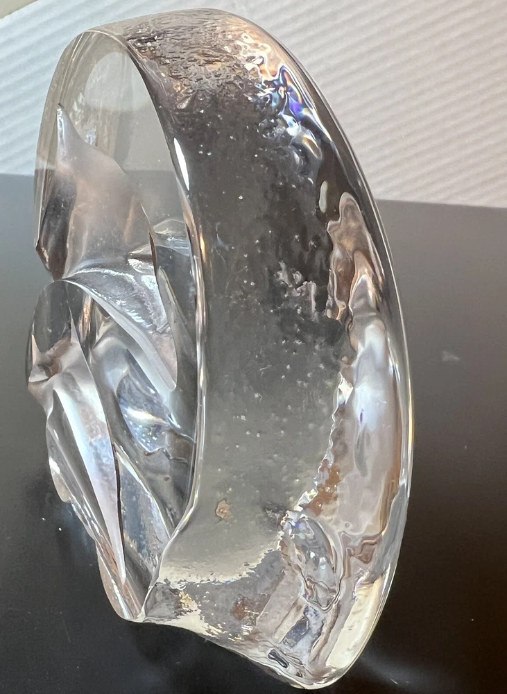 Clear Art Glass Swimming Dolphins Ocean Nautical Paperweight