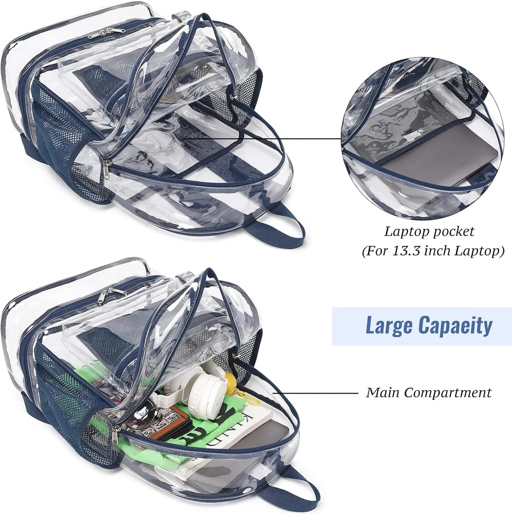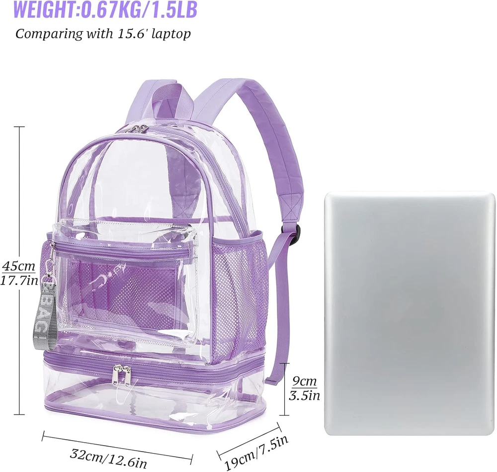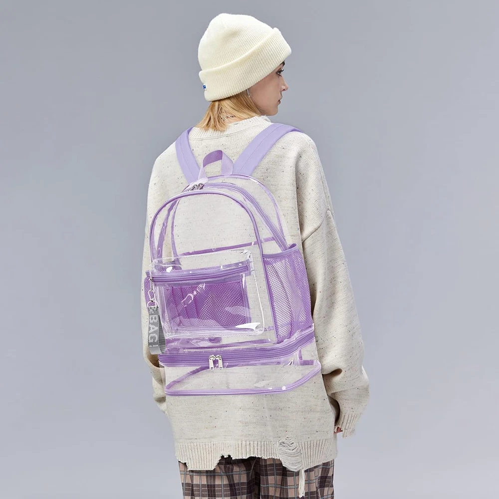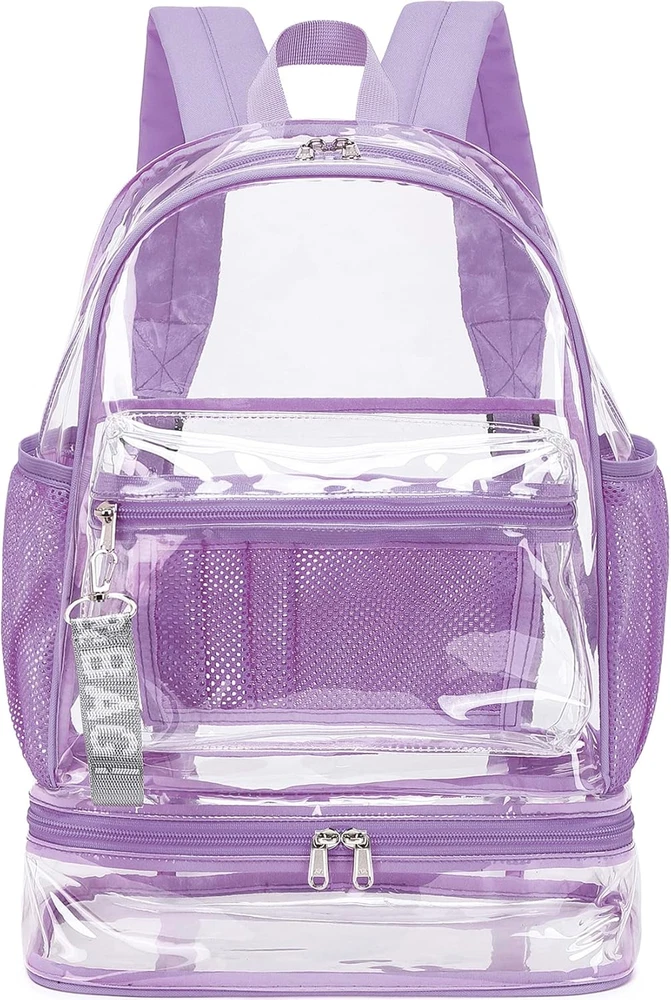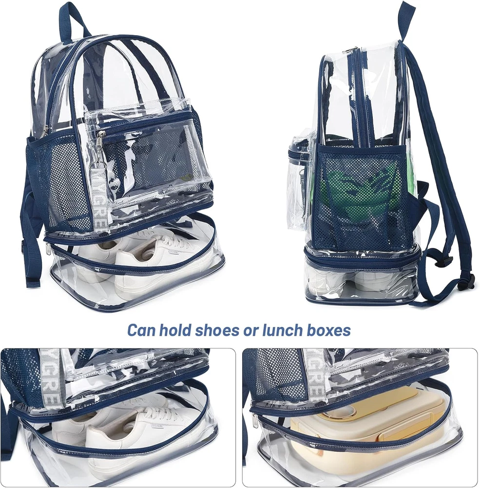 Clear Backpack with Bottom Compartment for Lunch Box or Shoes, 2-In-1 Design for