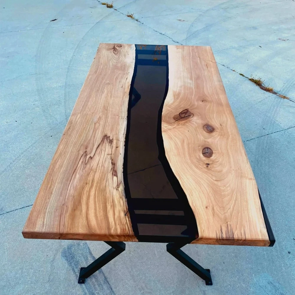 Clear Black Resin Acacia Dining Table, Epoxy River Office Desk Furniture Decor