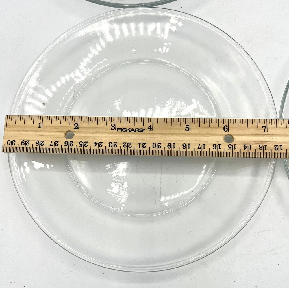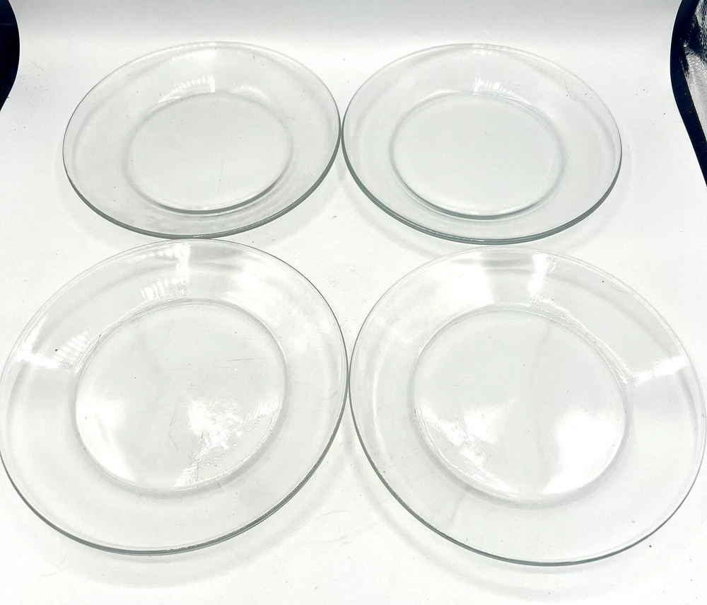 UPC: n/a Style: Clear Color: Clear Plate Diameter: 7.5 in Features: Unknown Year Manufactured: 1999 Department: Adult Handmade: No Item Weight: unknown Pattern: Clear Production Technique: Unknown Original/Licensed Reproduction: Original Custom Bundle: No Theme: Clear gtin13: n/a Origin: Unknown Type: Salad Plate MPN: Unknown Finish: Glossy Product Line: Unknown Country/Region of Manufacture: Unknown Item Height: n/a Shape: Clear Glass Material: Glass Vintage: Yes Set Includes: Dessert Plate Production Style: Clear Glass Manufacturer Warranty: Unknown Item Width: 7.5 in Time Period Manufactured: 1990-1999 Backstamp: Clear Number of Items in Set: Four-Piece Item Length: 7.5 in Era: Unknown Antique: Yes Occasion: All Occasions Brand: Unmarked