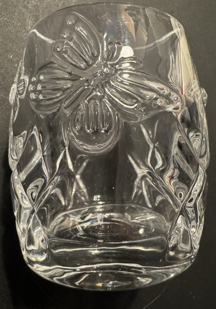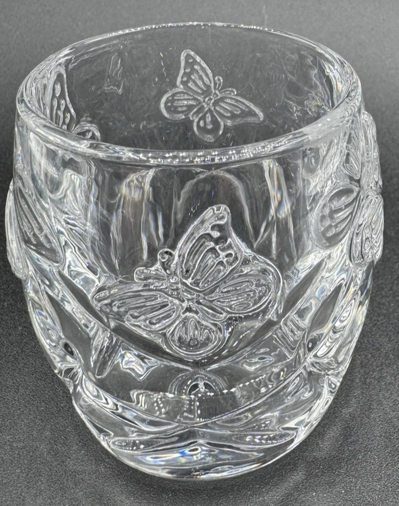 Customized:NoCountry of Origin:ChinaAdditional Parts Required:NoCare Instructions:Clean with Damp Cloth, Clean with Warm Water, Easy CareRoom:Any RoomHandmade:NoAntique:NoEngraved:NoStyle:Art DecoItem Height:3"Pattern:ButterfliesNumber in Pack:1Finish:GlossyOccasion:All OccasionsFeatures:Raised Relief, UnboxedDepartment:AdultsBrand:UnbrandedShape:RoundSize:SmallSubject:ButterflySeller Notes:“no chips or cracks”Type:Candle HolderColor:ClearMaterial:GlassPackaging:Unboxed