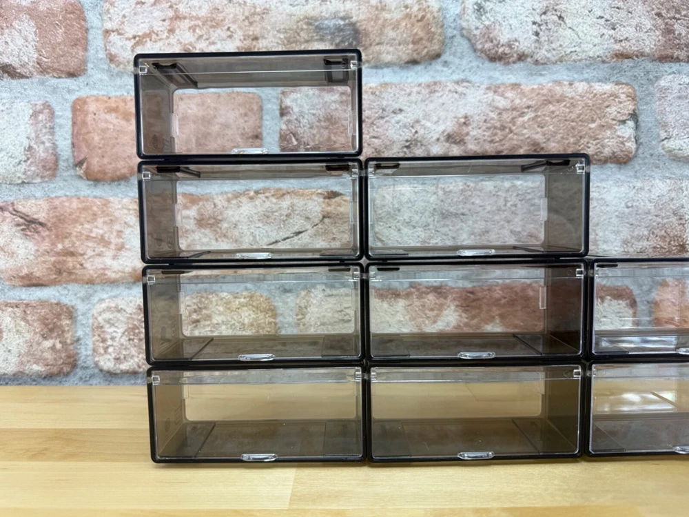 This listing is for 10 individual pieces Fits a wide range of Cars from Matchbox, Hot Wheels, plus many other 1/64 collectibles Transparent on all sides with a tint of gray Can stack as many as you want, creating your own unique display