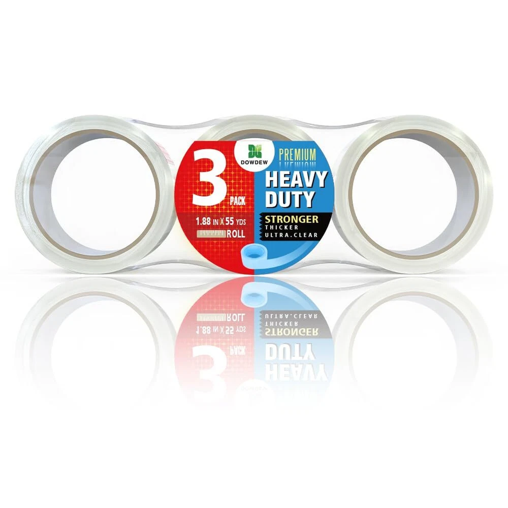 Clear Packing Tape, Heavy Duty Packaging Tape 1.88 inch x 55 yards Refill Roll for Shipping Mailing Moving [Ultra Strong - Super Thick] HEAVY DUTY - 1.88 inch x 55 yard clear packaging tape refill roll [Super Thick] Ship with the confidence of knowing your packages are properly secrued with ultra strong durable packaging tape Made of premium materials, Heavy Duty Edition tape rolls are made thicker, stronger than competitors. Fit all standard size tape dispensers / tape guns HEAVY DUTY - 1.88 inch x 55 yard clear packaging tape refill roll [Ultra Strong - Super Thick] Made of premium materials, Heavy Duty Edition tape rolls are made thicker, stronger than competitors. Ship with the confidence of knowing your packages are properly secrued with ultra strong durable packaging tape. Premium quality ultra clear tape with industrial grade adhesive holding power Fit all standard size tape dispensers / tape guns
