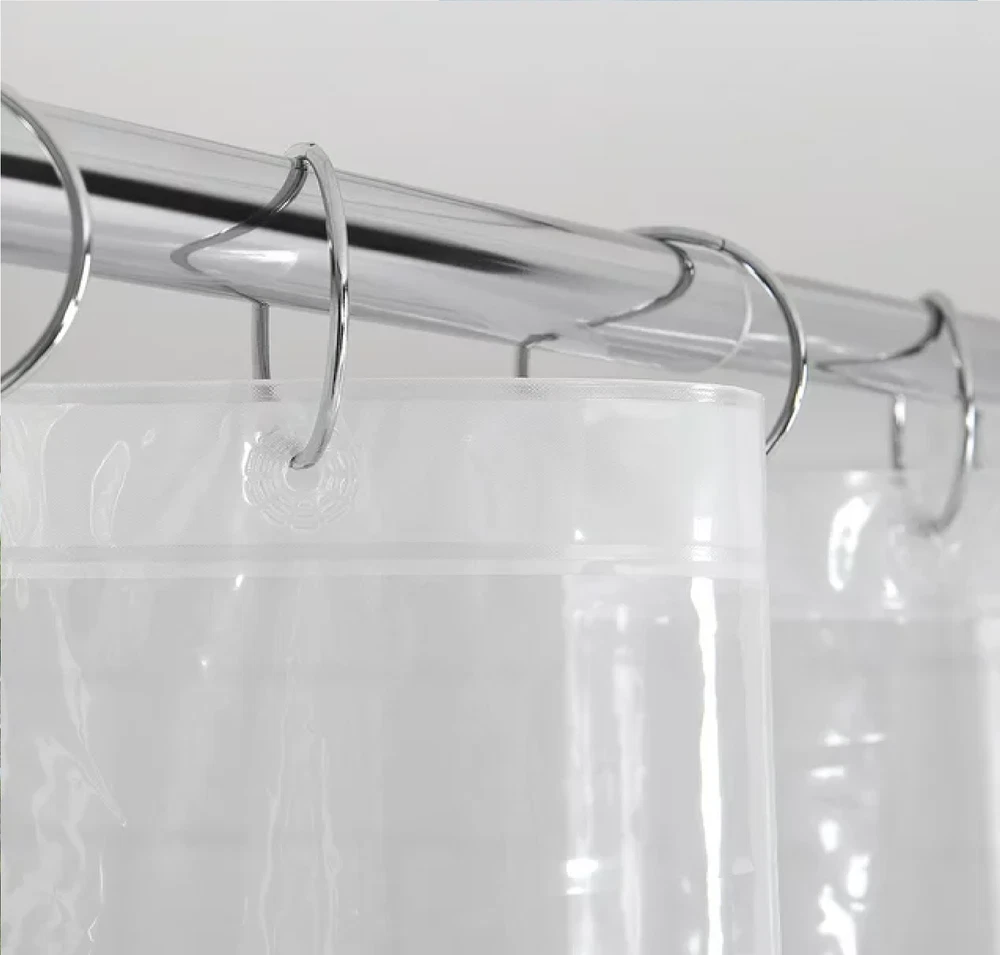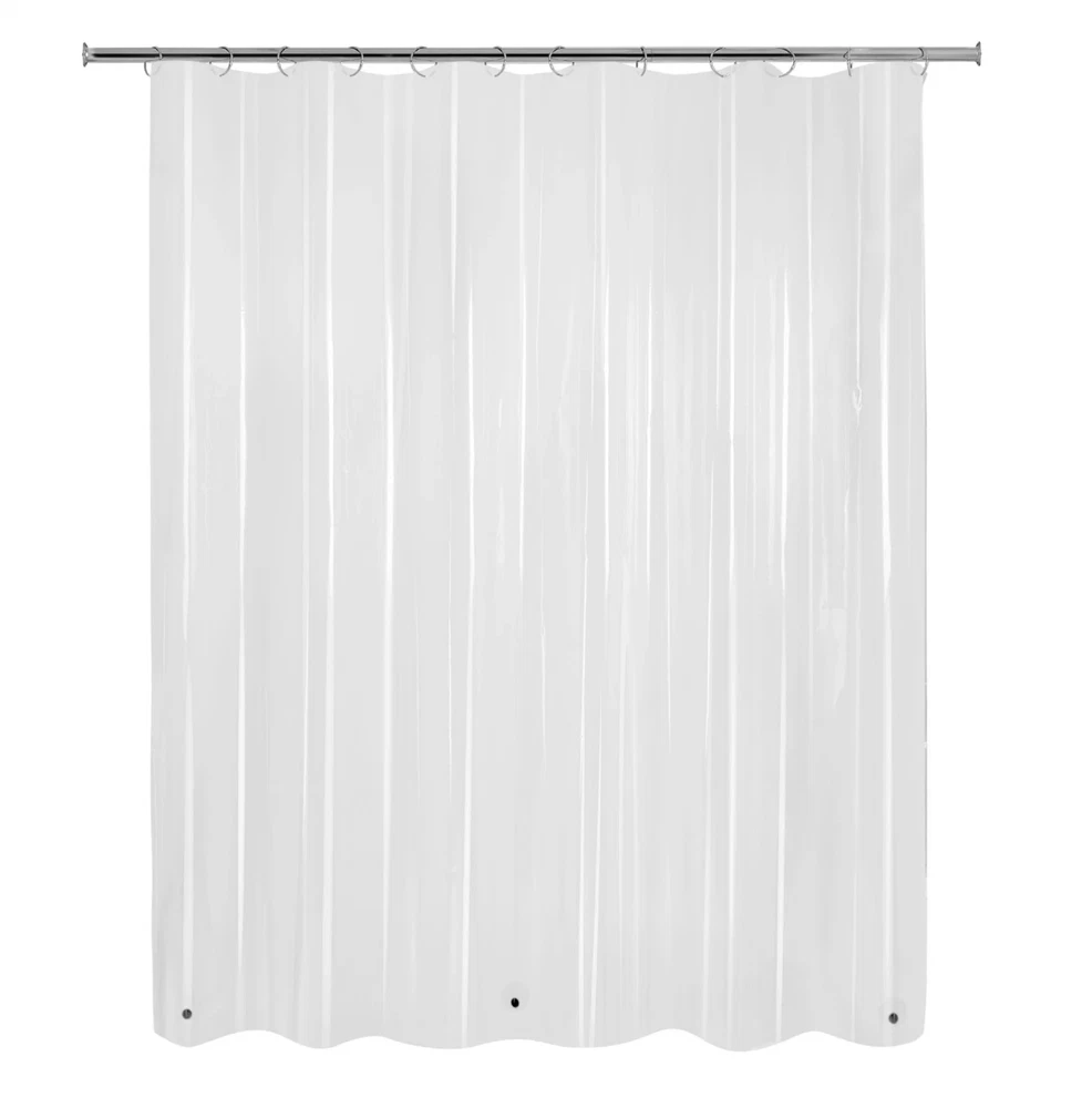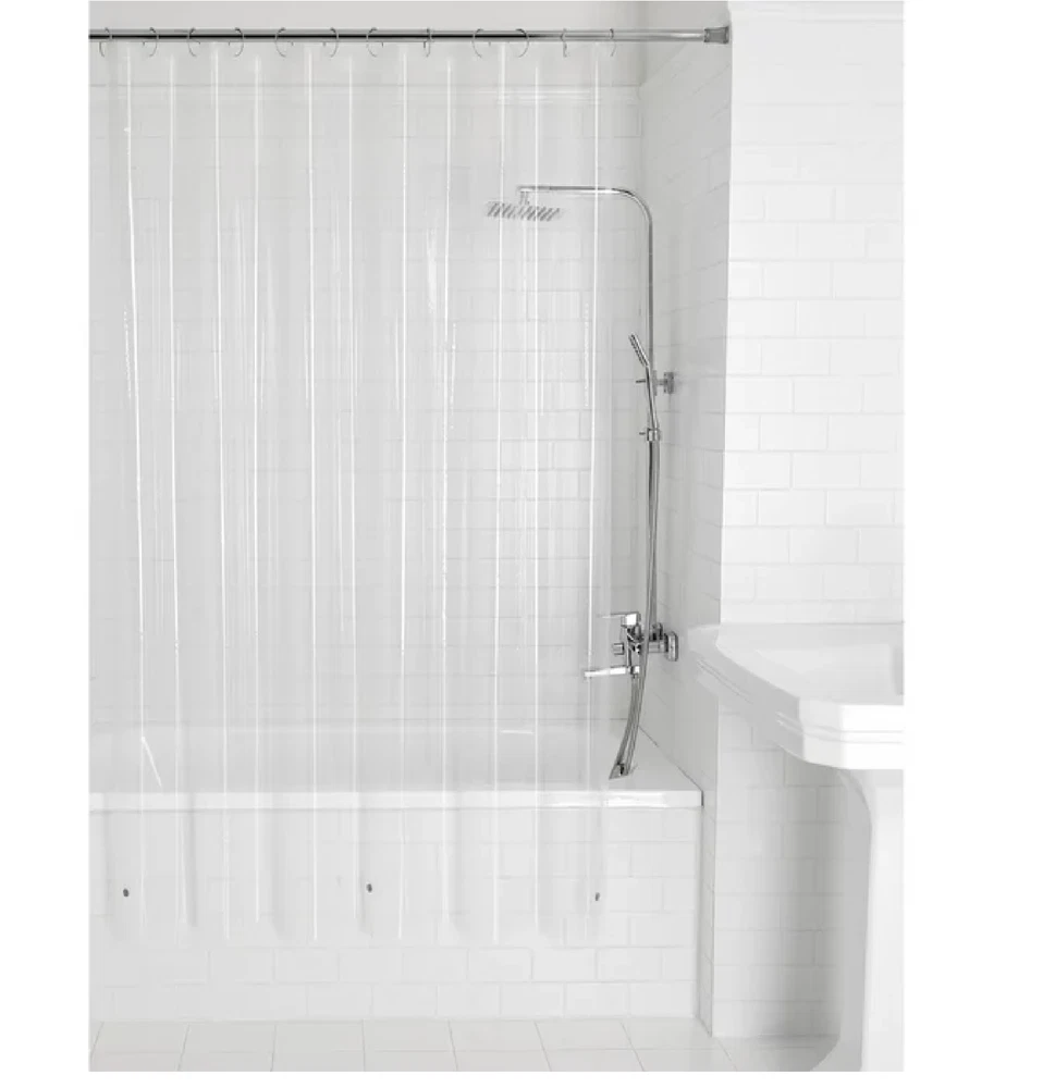 Mainstays Light Weight PEVA Shower Liner, Clear Description: The Mainstays Light Weight PEVA Shower Liner will help keep your decorative shower curtain dry, while keeping water off your bathroom floor. It has a reinforced buttonhole top and enclosed magnets on the bottom to give better support and help prevent bunching and billowing. The liner fits most standard sized tubs and shower areas, and it's easy to hang and works well with standard shower hooks and rods (not included). Choose from clear, frosted, white, and a number of fashionable colors. Whether you are layering this with a shower curtain or using it alone, this piece will be the perfect addition to your bathroom. Simply, wipe clean as needed for easy cleaning. Complete your bathroom with the Mainstays Light Weight PEVA Shower Liner. Specifications: Mainstays Light Weight PEVA Shower Liner, Clear Made from 100% PEVA Size: 70 in x 71 in Fits on standard shower hooks for easy installation (hooks not included) Wipe clean with a damp cloth Magnets weight and keep bottom attached to the tub and minimize billowing