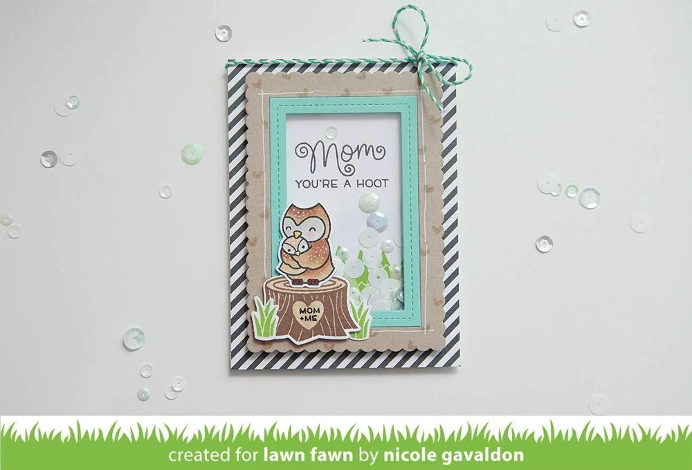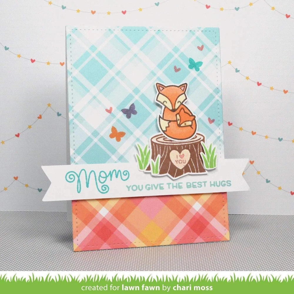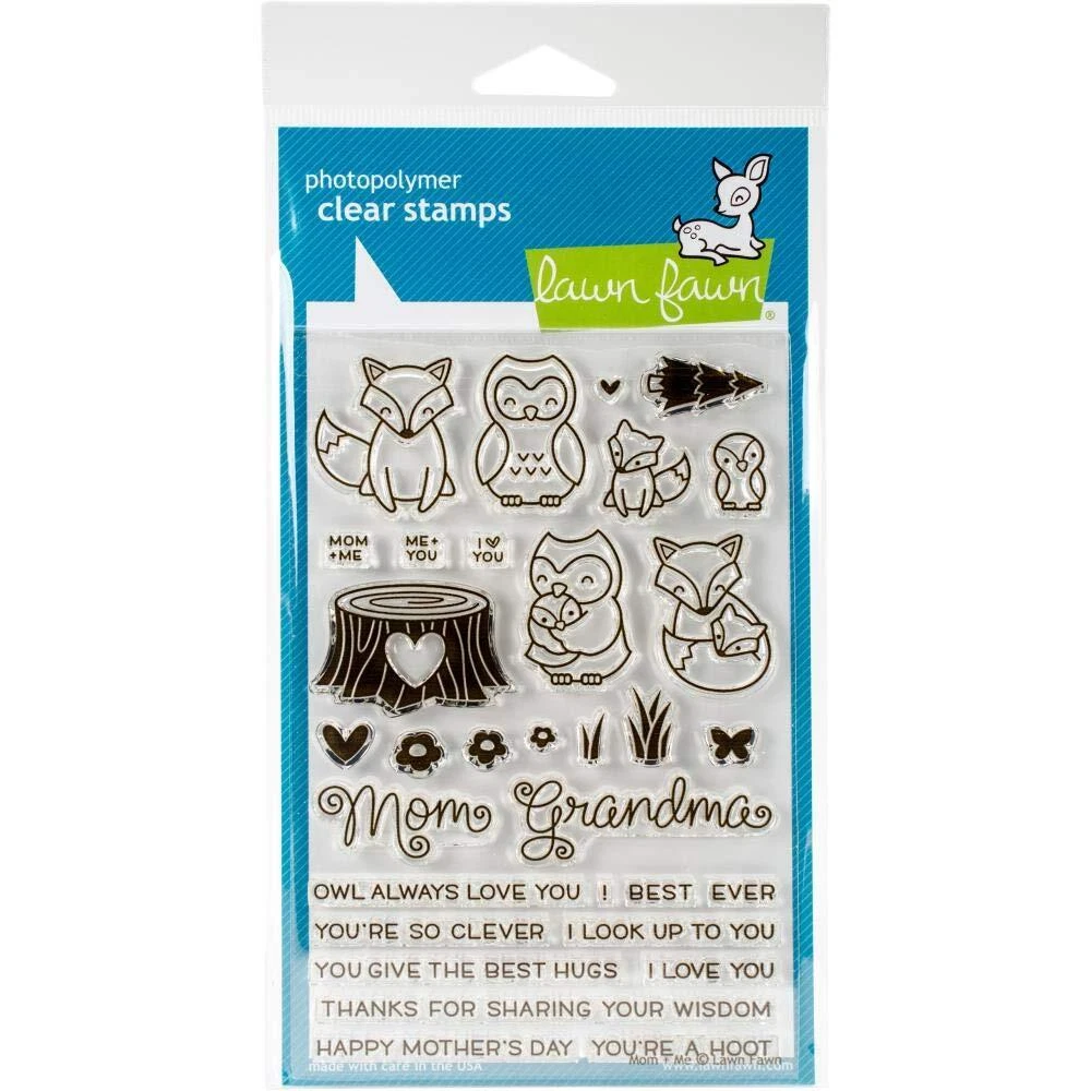 You'll have a hoot with this set of clear stamps featuring a mama fox, owl, babies, a tree stump, and lots of matching sentiments. These stamps are perfect for Mother's Day, but are also great for baby cards, friendship cards, and more! Pair them with Dies - Mom + Me (LF1135) to make scrapbooks, stationery, and other crafts. Gently peel the stamp off the sheet, position on an acrylic block, and stamp. Approximate stamp sizes: 1. Mama owl 7/8" x 1 1/4" 2. Tree stump 1 1/2" x 1" 3. Baby fox 11/16" x 3/4" 4. Mom 1 3/8" x 9/16" 5. Happy mother's day 1 3/8" x 1/8" Approximate stamp sizes: 7/8" x 1 1/4", 1 1/2" x 1", 11/16" x 3/4", 1 3/8" x 9/16", 1 3/8" x 1/8". This package contains 32 clear stamps on a 4" x 6" backing sheet. Coordinating Die Cuts: Dies - Mom + Me (LF1135). WARNING: Choking Hazard - small parts. Not for children under 3 years. Made in USA.