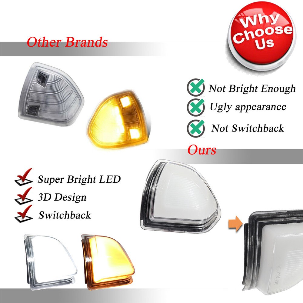 Clear Switchback LED Side Mirror DRL Signal Lights For Dodge Ram 1500 2500 3500 Clear Switchback LED Side Mirror DRL Signal Lights For Dodge Ram 1500 2500 3500 Update your Car with cool and fashion style LED front side mirror turn signal lamps This auction features one pair (2 pieces) of brand new clear lens switchback LED front side mirror lights lights for 2010-2021 Dodge Ram 1500 & 2010-2018 Dodge Ram 2500 3500 4500 5500 Switchback Color: White LED lights For DRL/Driving Lights; Amber LED For Signal Lights NOTE: The extra white cable connects to the rear view mirror bottom “+” or the ACC. Each package includes a pair of switchback LED diodes housed in clear lens side mirrors lights The enhanced brightness elevates your Dodge's presence and aura by adding additional safety and visibility features, while increasing its visual appeal. Installation tips: Carefully remove the mirror glass to access the screws/clips inside; Release them to further take off the cap/cover, and then directly replace this LED lamp assy underneath the cover. After the installation, please lock the vehicle, wait about 5 sec, and then turn on the engine to allow the onboard computer to reset itself before testing function. ☛Feature: 100% Brand new and quality Clear lens Color: Amber (While turn signal is switched on); White (When side mirror bottom light is switched on) Good for 2010-2021 Dodge Ram 1500 & 2010-2018 Dodge Ram 2500 3500 4500 5500 OEM Part Number #: GM 68302828AA 68302829AA Full of super bright light strip repeater blink flash indicator Direct replace the factory OEM LH RH mirror turn signal with this clear lens LED DOT SAE approved Replace the original amber lens with LED strips lamps in clear lens Give your car an unique premium Euro style with excellent LED lighting and increased safety and style! ☛Specification: T ype of Lights: Switchback LED front side mirror signal light lamps Material: Durable Black ABS Housing Waterproof: IP67 Lens color: Clear Light color: Amber & White Installation position: Front Side Mirror Lamps Ultrasonically sealed Work Temperature:-40 - 60 centigrade degree Voltage:12-24V DC; Power: 3W L ow power consumption; Quick Instant Start-Up time ☛Fit for: For 2010-2021 Dodge Ram 1500 For 2010-2018 Dodge Ram 2500 3500 4500 5500 Note: In order to ensure the item fit your vehicle properly, please check our fitting tab, pictures and your vehicle stock OEM part number information carefully and note model name and year on your order.a Please make sure you have available space in your car for these lights to fit before placing order. ☛Package included: 2x Front LED Side Mirror Lights ☛Installation: Easy asy to install, simply remove the mirror glass and mirror cover and directly replace the OEM mirror turn signal lamp assembly. The extra white cable connects to the rear view mirror bottom “+” or the ACC. Note: Professional installation is highly recommended! Payment Delivery details Terms of sales Contact us Feedback Payment We only accept payment via PayPal. Please make sure shipping address on your PayPal account is correct and up-to-date. Payment from bank account and all major credit cards will be accepted through secure payment processor PayPal. Delivery details Item will be shipped to buyer's PayPal shipping address within 1 business day after clear payment received. Tracking number of domestic orders will show up on buyer's eBay account once order is shipped. Please make sure shipping address on your PayPal account is correct & up-to-date. All of our items are shipped from our GA, USA warehous e. * Please note that post office doesn't process parcel on Saturday, Sunday & public holidays. Terms of sales Warranty policy: This item comes with 60 day exchange (replacement) warranty. Buyer could choose exchange to same item or apply store credit to other items in our store. Exchange will be processed after we received return. We only accept refund request for un-opened or un-used item, buyer has to return item in original condition and retail package within 30 day. 20% restocking fee will be deducted for all refund cases. Refund will be processed after we received return. Buyer is responsible for return shipping cost of ALL exchange/refund cases. We will cover shipping cost when sending out replacement. Products that are modified/customized are NOT covered by our return/exchange policy. Compatibility issue: Please check actual stock bulb model & housing size before purchasing replacement bulbs. Compatibility list on eBay listing is not a complete list and it is a known issue that there are errors on it. If you encounter model/functional compatibility issue, please contact us for assistance. We will help you exchange to compatible item (if available). We only accept refund request if we don't carry compatible item. 20% restocking fee will be deducted for ALL refund cases. Buyer is responsible for both return and resend shipping cost when exchanging an item with compatibility issue. We will cover resend shipping cost if compatibility problem is directly caused by incorrect information on listing. Buyer will be charged for price difference when upgrading to a more expensive model. Contact us Should you have any question/concern regarding our item/auction, please feel free to send us an eBay message. We will answer your question in a timely manner (within 12 hours in most cases). Reply will show up on your eBay account and goes to the email address associated with your eBay account. If you don't receive our reply within 2 business day, please kindly check your junk-mail box. If you are interested in bulk order, please contact us for a quote. Feedback We appreciate your business and strived to improve our customer service and our commitment to quality. We will leave a positive feedback immediately after payment is received. We appreciate a positive feedback as much as you do. If for some reason there is any issue with the purchase, please contact us prior to leaving f