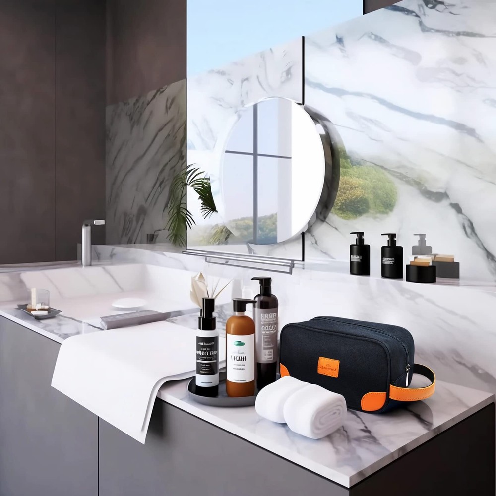 $ 4.13Genuine Sheep Nappa Leather Unisex Luxury Toiletry Travel Bag with Bathroom Organizer