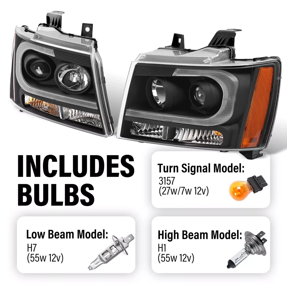 FIT FOR: For Chevrolet Suburban 2007-2014 For Chevrolet Tahoe 2007-2014 For Chevrolet Avalanche 2007-2013 Specification : Condition: 100% Brand New Type: Headlight Material: Plastic Color: Clear Lens+Black Housig/Clear Lens+Chrome Housing/Smoke Lens+Chrome Housing Installation method: Screw-On Placement on Vehicle:Front, Left, Right Manufacturer Warranty:1 Year Note: Includes Structural and Functional Guidelines Replaces Part Number:Replace for 1221-0120L, 1221-0120R, 22853025, 22853026,GM2502263, GM2503263 Features: Made of high quality plastic with strong strength and resistance impact. Built to strict quality control standards. Produces stronger and more focused light beam compared to most headlights. Replace broken headlights, and bring your vehicle back to life. Highlight headlights increase forward distance visibility as well as peripheral width. Good waterproof performance can prevent rainwater from entering to ensure your driving safety. Package Includes : 1 Pair of Headlights (Driver & Passenger Side) w/ Structural and Functional Guidelines Shipping: All items will be shipped out in 1 business day, no expedited service available. We ship our items to USA only(Does NOT include Hawaii, Alaska or Puerto Rico, PO Boxes/APO's). Shipping Notes: We use multiple warehouses and will select the nearest warehouse for delivery according to your order address and our inventory, Thank you for your cooperation. Contact us: Any Questions, Just feel free to contact us on eBay. We will reply you in 24 hours. On Dec 5, 2024 at 22:02:38 PST, seller added the following information: