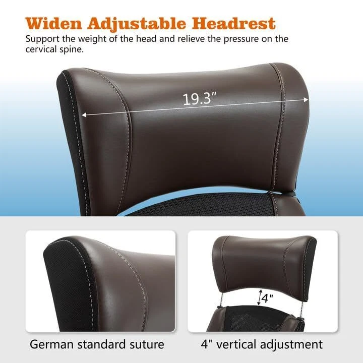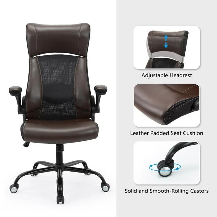 Return Policy Fast Delivery Trusted seller Clearance Executive Office Chair, Ergonomic Leather Desk Chair - Widened Adjustable Headrest with Flip-Up Arms, High Back Computer Swivel Task Chair with Lumbar Support, Brown Product Description ?【CREAT THE ULTIMATE WORK-STATION】-- If you are having difficulty finding a comfortable executive desk chair if you are a big & tall guy we have got a Leather computer chair for you! This office chair is to help you dream big! Unlike standard chairs that cause muscle stiffness, back pains, and discomfort, our office chair is ergonomically designed to provide the ideal neck and lumbar support. ?【MULTIFUNCTIONAL DESK CHAIR】--The adjustable widened headrest and lumbar support ensure anyone sitting in the chair gets their best position. The 20.47-24.21 inches seat height adjustment makes you comfortable in any sitting position. Rock back and forth to relax your back muscles and increase blood circulation while working. Perfectly suits your needs. Also, the seat can be pushed below any table owing to the flip-up armrest design, saving more space in the room. ?【BONDED LEATHER SEAT, DESIGN FOR THE COMFORT】--Not all artificial leather is created equally. This executive desk chair is upholstered in bonded leather that is resistant to scratches, stains, peeling, and cracking. The soft leather conforms very well to the body and relieves the problem of sedentary pressure on the sciatic nerve. With upholstered armrests and an elegant design look, this computer chair will complement your home or office perfectly ?【 BREATHABLE MESH BACK DESIGN】-- This ergonomic office chair features a breathable and shape-adapting mesh back that can effectively provide you with a breath for your back, and prevent the accumulation of sweat and heat. ?【STRONG DURABLE MATERIAL】-- Smooth-rolling executive chair on any kind of floor. Passed BIFMA 200,000 rolling test. The heavy-duty metal base for heavy-duty office chair. Weight capacity of up to 300 lbs. Shipping Returns Payment Shipping Shipping is FREE to all addresses other than APO/PO boxes in the lower 48 states. All our stock ships from US-based warehouses. Shipped via USPS or UPS (depending on location and package weight) Unless stated otherwise, all orders will ship within 24-72 hours of your payment being processed. Check our feedback to see the great reviews of FAST shipping we offer. Returns Seller does not accept returns Payment We currently accept payment via eBay managed payments only. Once payment is cleared, we will dispatch your shipment within 1-3 business days. Please refer to the "Shipping" tab for more information regarding shipping speed to your destination.