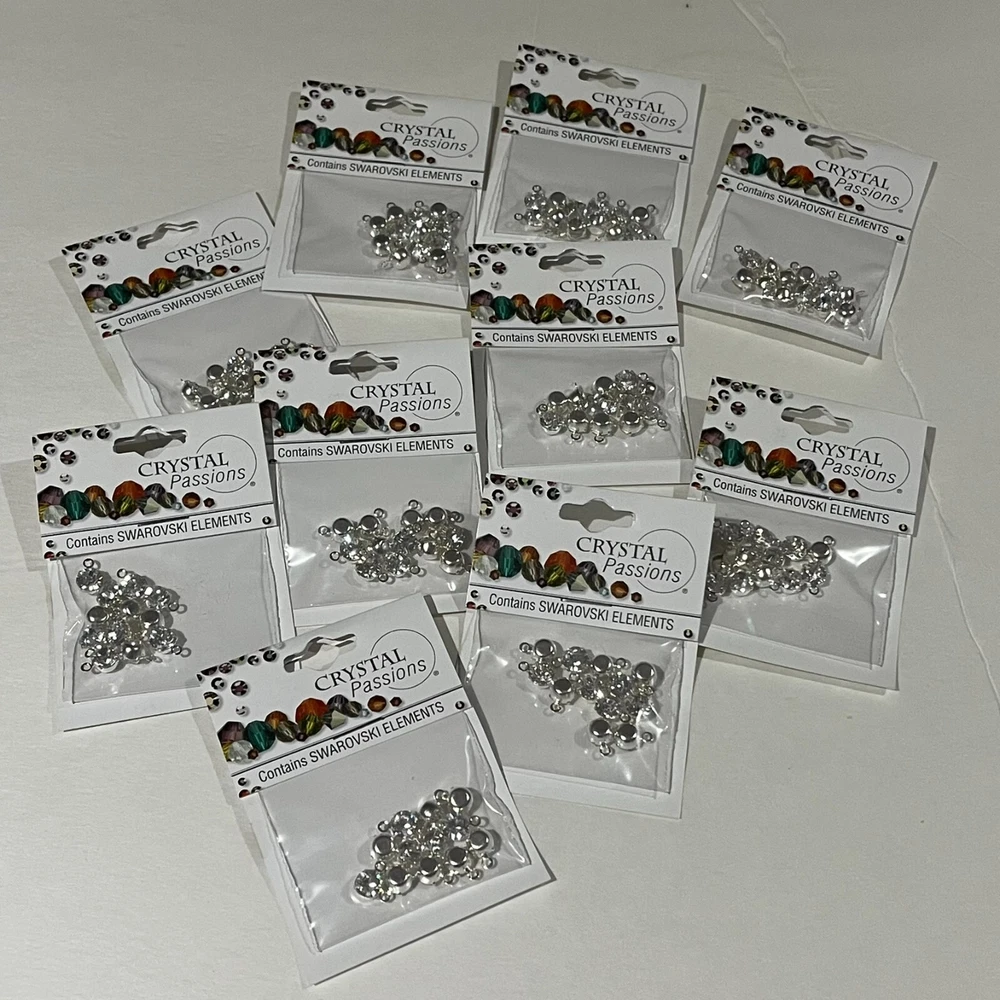 These are so rare and hard to find anymore! These high quality Swarovski Rhinestone Crystal charms are stunning! The crystals are foiled and clear in color. The settings are raw brass that have been silver plated. Perfect for earrings or charms, these have 1 loop. The crystals are 6mm. You will receive minimum 5 packs or 60 pieces Clear Crystal Rhinestone 6mm with original pack of Swarovski Elements made in Austria. Proof of authenticity! Get these for very low price, cheaper if you buy more. Limited Quantity available.