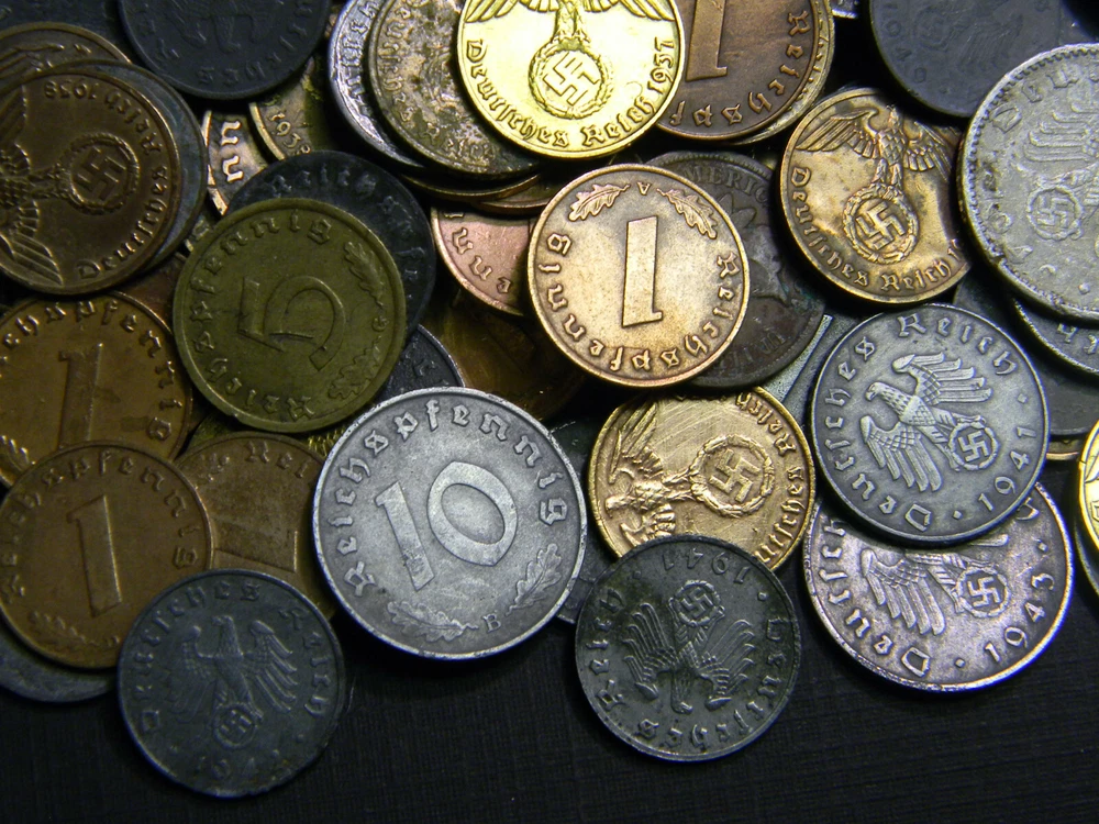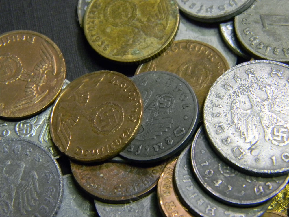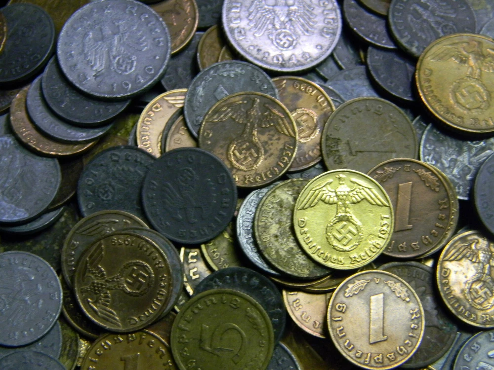 Description Each lot contains six (6) randomly picked WWII-era German coins. All six coins are different. A typical lot contains: 1937-1940 1 Reichspfennig, bronze 1937-1940 2 Reichspfennig, bronze 1940-1944 1 Reichspfennig, zinc 1940-1944 5 Reichspfennig, zinc 1940-1944 10 Reichspfennig, zinc And ONE of the following rarer types 1937-1939 5 Reichspfennig, brass 1937-1939 10 Reichspfennig, brass 1939-1944 50 Reichspfennig, aluminum Special offer: Save 5% when you buy 2 sets, 8% when buy 3 and 10% when you buy 4 or more. Order 3 or more will get all 3 of the "rarer" type of coins mentioned above Shipping Each additional item ships FREE within continental U.S.A. In ter national bidders are welcome and pay the actual shipping cost.