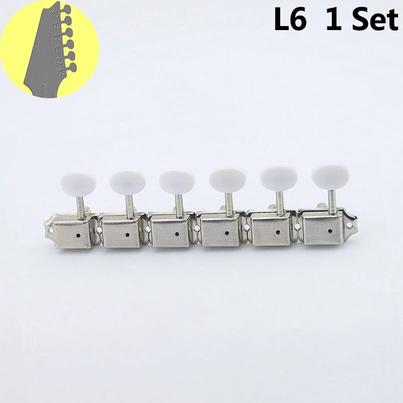 PRODUCT INTRODUCTION : ITEM: Vintage Guitar Machineheads Tuners STIPULATIONS: Gear ratio - 1:15 ; Refer to the data in the picture COLOR: Nickel as shown in the picture WEIGHT: 150G/Set ITEM REAL PICTURES: