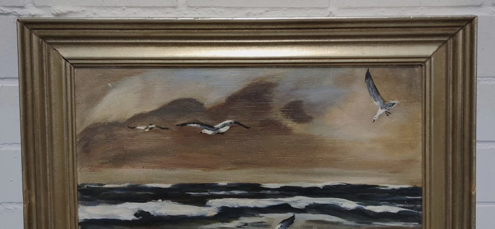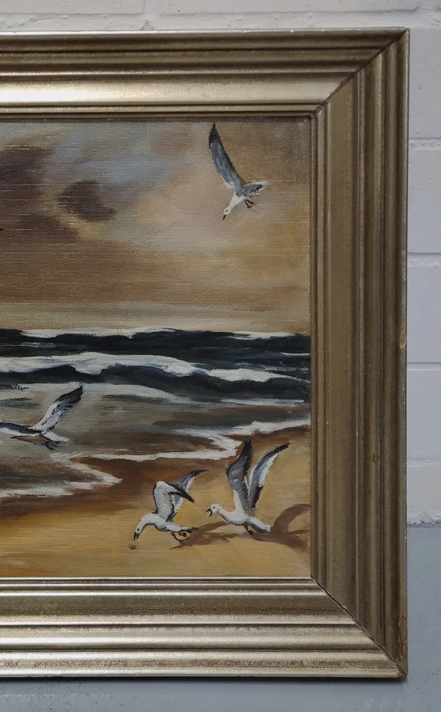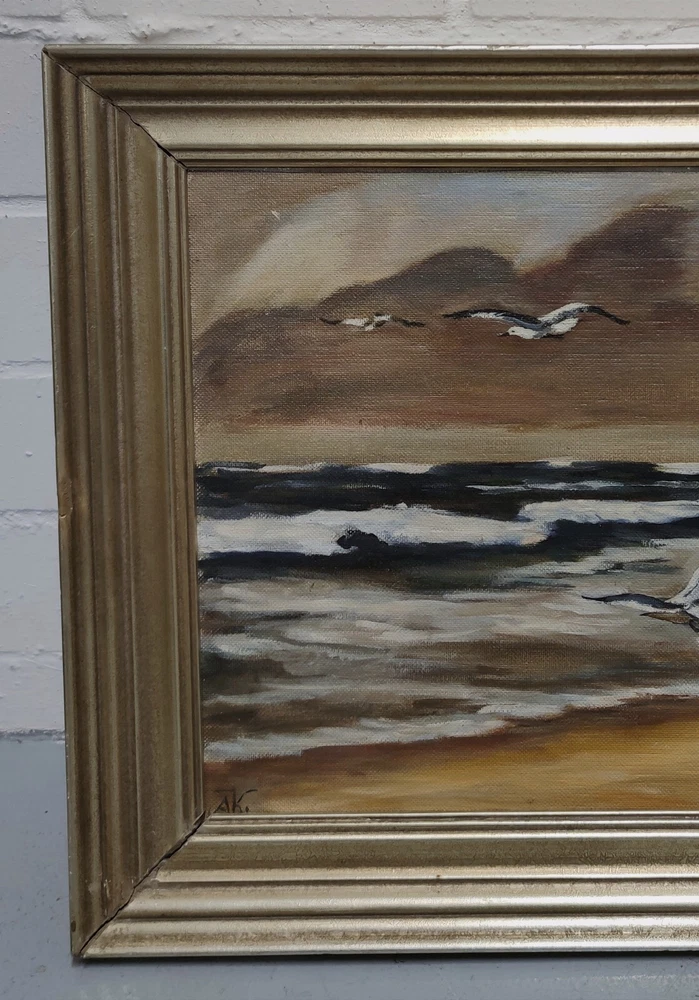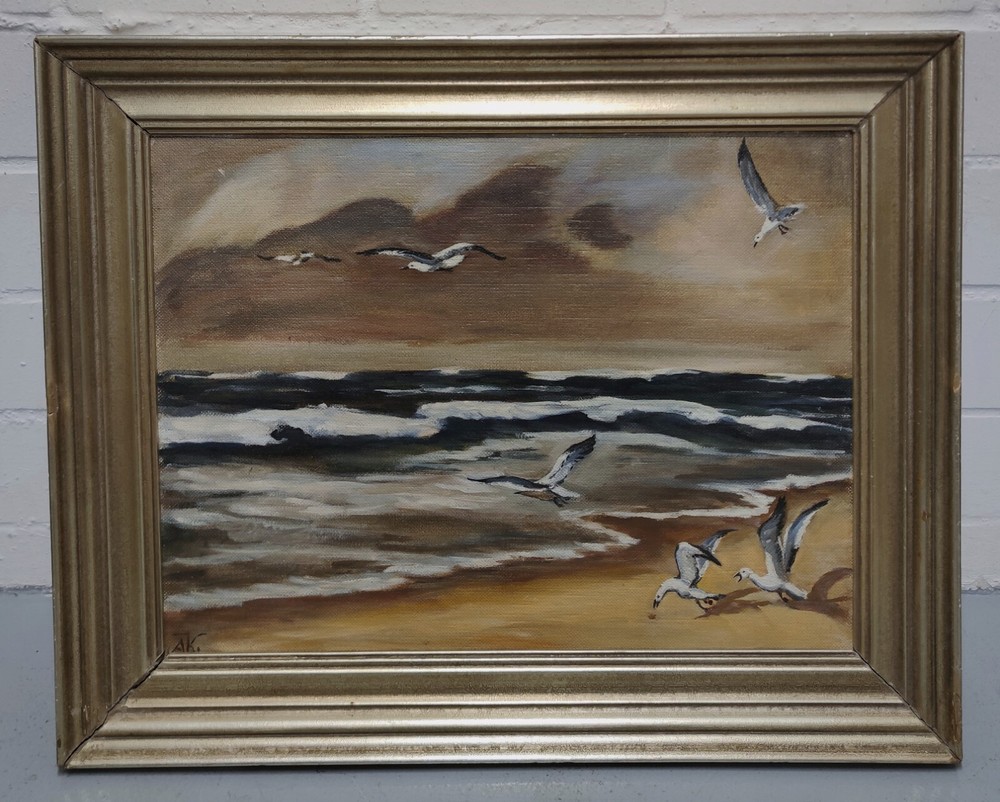 Clearance Sale Handover Pickup Painting Monogrammed AK Sea Beach Seagulls The description of this item has been automatically translated. If you have any questions, please feel free to contact us. Item description Size: approx. 74x60 cm frame external dimensions Technique: oil on wood Item description Size: approx. 74x60 cm frame external dimensions Technique: oil on wood Echtheitszertifikat Nein Produktart Gemälde Stil Realismus Besonderheiten One of a Kind (OOAK) Signiert Ja Personalisieren Nein Höhe K.A. Breite ca. 60 cm Rahmenaußenmaß Größe Mittel Herstellungsmethode Öl Original/Lizenzierte Reproduktion Original Herstellungszeitraum Unbekannt Künstler Unbekannt Angebotspaket Nein Handgefertigt Ja Material Holz Rahmung Gerahmt Länge ca. 74 cm Rahmenaußenmaß Motiv Landschaft Motiv Landschaften & Städte Herkunftsregion Unbekannt Kultur Unbekannt Herstellungsland und -region Unbekannt Thema Natur Signiert von AK Verkaufseinheit Einzelwerk Herstellungsjahr Unbekannt Anzahl der Einheiten 1