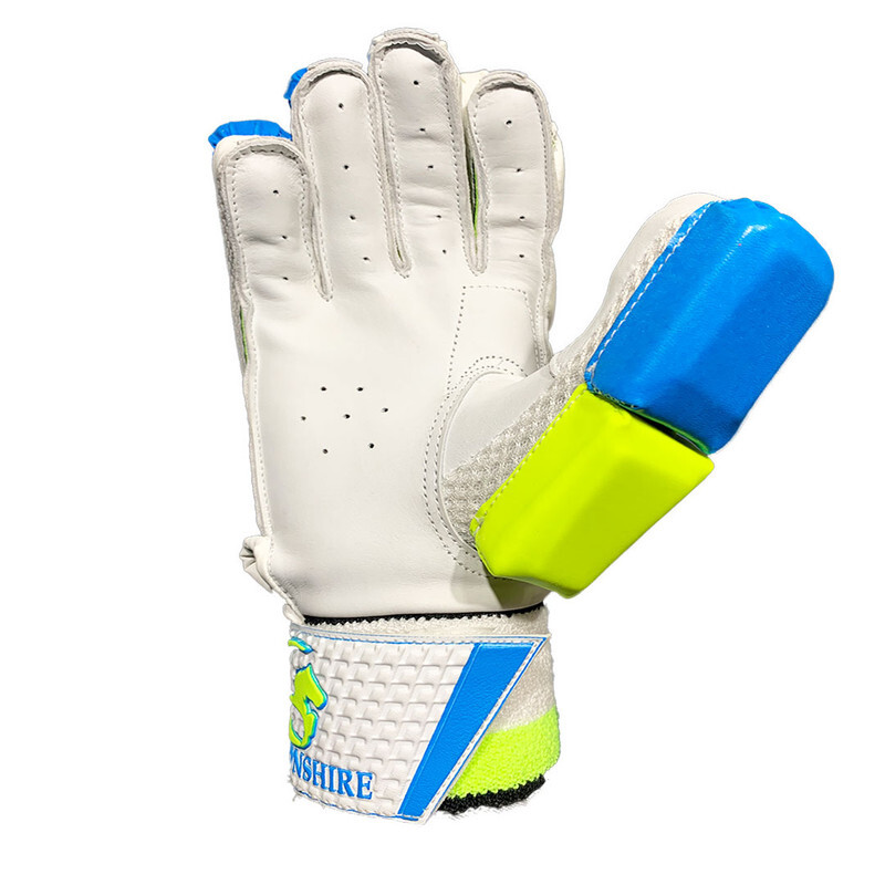 Features of Gortonshire Elite Cricket Batting Gloves : * Top quality imported Polyurethane finger rolls. * Nylon gusset for ventilation. * Sponge-padded polyurethane back for better fit and comfort. * Extra finger protection reinforced with a thermoplastic polyurethane insert in the first two fingers of the lead hand. * Cotton filled finger rolls. * High density foam reinforcement for higher protection. * Two-piece sidebars on lead hand. * Leather tabs on fingertips. * Toweled wristband with embossed Velcro® fastener. * Color may slight vary