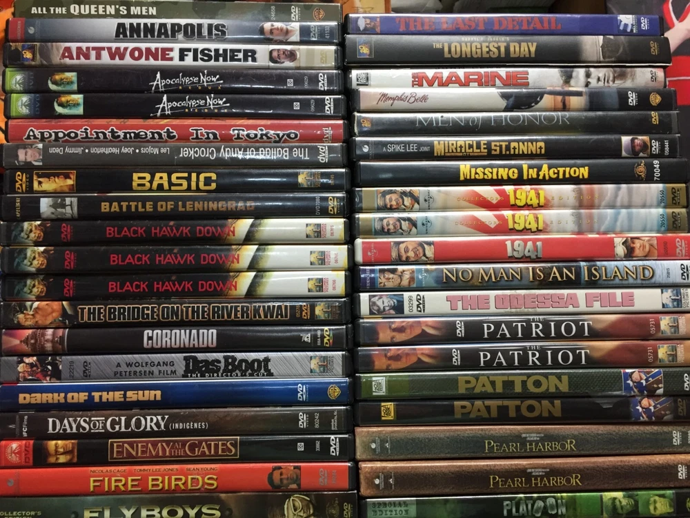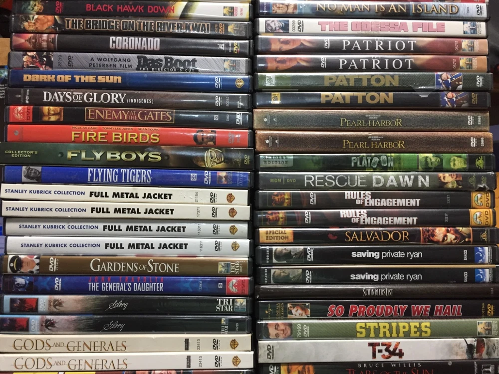 These are classic Military, Western, and Sports movie DVDs. Buy more to receive volume discounts. Postage is $4.25 for the first movie and only $.25 for each additional. Check out my other listings for even more great titles. 1-3 disks get mailed via bubble envelope. 4 or more get mailed in boxes. Buy at least 4 for best packing. To get discount, add each title to your shopping cart and then check out. discount will be automatically applied. If you add items from my other listings, it won't automatically combine shipping across listings, so I will refund the excess shipping paid after checkout.