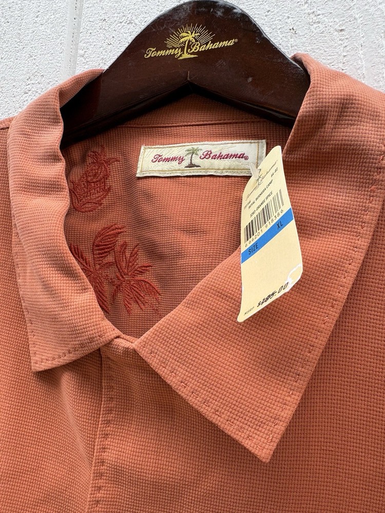 Tommy Bahama men’s silk BUTTON Down shirt made from 100% silk for a lightweight, smooth, and breathable feel. Perfect for casual wear, resort wear, or vacation style.Orange Tangerine color tone Condition: Brand new, unworn, and still in original packaging. This is a clearance item and has never been worn.