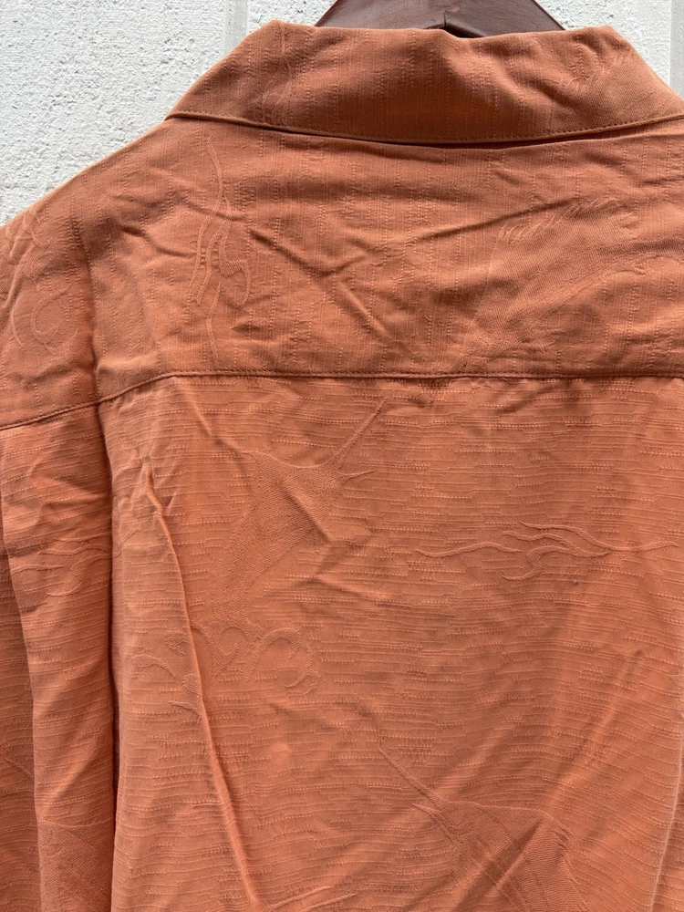 Tommy Bahama men’s silk BUTTON Down shirt made from 100% silk for a lightweight, smooth, and breathable feel. Perfect for casual wear, resort wear, or vacation style.Tangerine Orange Condition: Brand new, unworn, and still in original packaging. This is a clearance item and has never been worn.