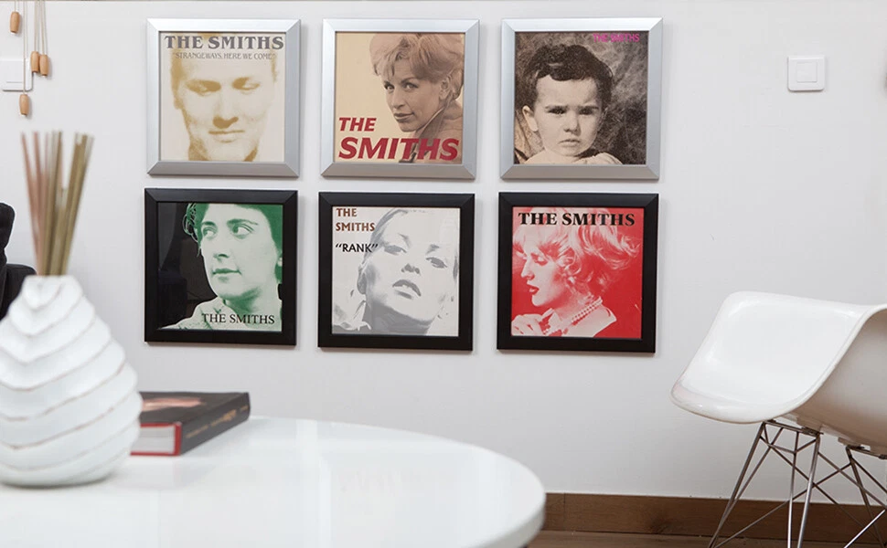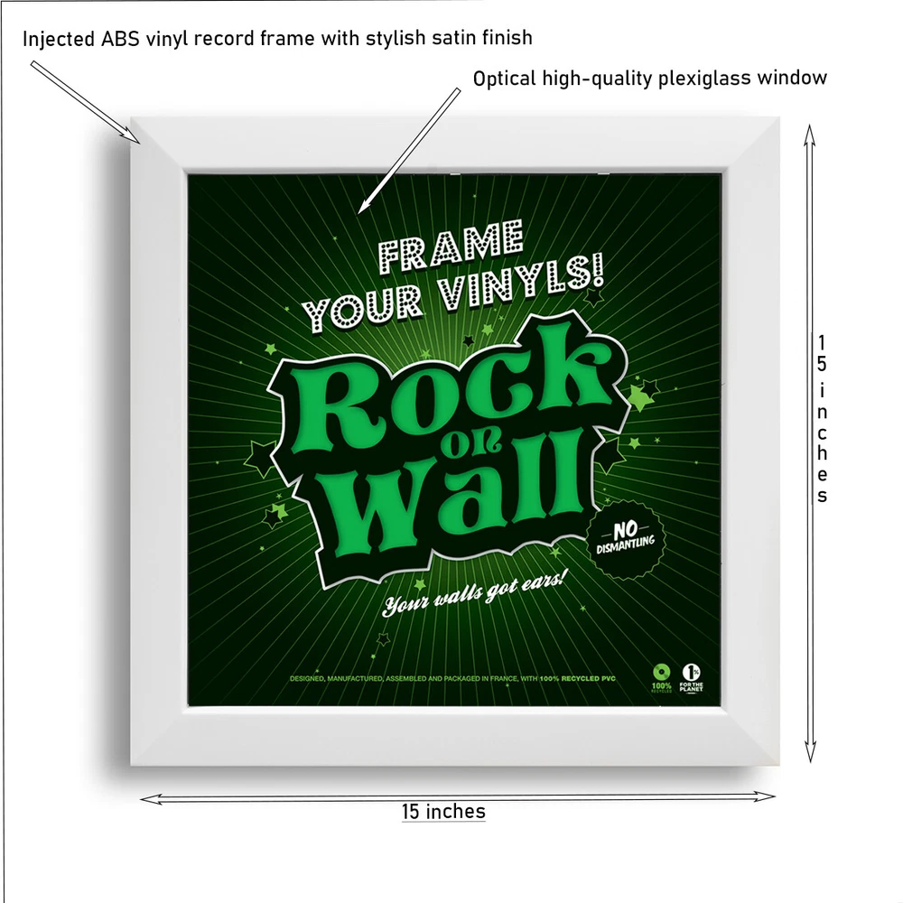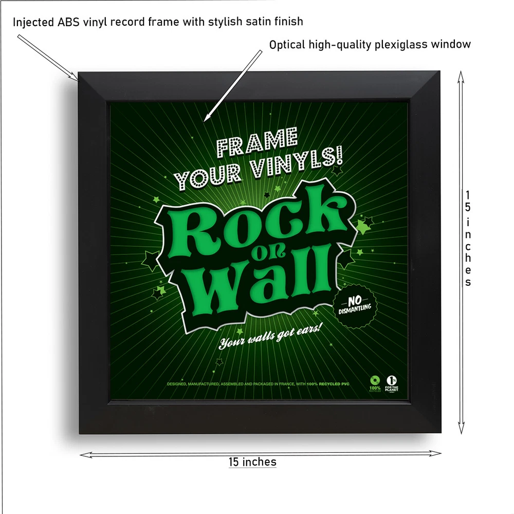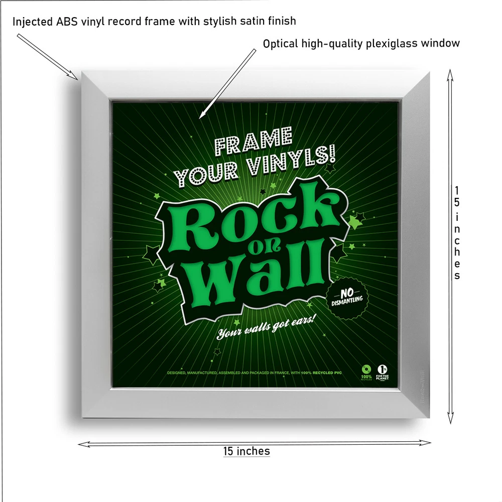 Set of 2 Vinyl Record Wall Display Frames. PLEASE NOTE THAT A BARELY NOTICABLE MARRING HAPPENDED DURING SHIPMENT. HENCE THE HEAVY DISCOUNT ON THE ITEMS. THE FRAMES ARE SOLD AS IS. The Easy Frame is a truly innovative vinyl wall display frame. The best accessories to store, protect, display and highlight your record collection! You can easily change your decoration according to your desires or new purchases thanks to the patented Easy Frame system by Rock on Wall that allows to switch your framed record in a single move and without disassembly. Our injected recycled PVC frame, available in 4 colors, is designed to make the fitting and displaying of the artwork as simple as possible. Just slip the sleeve into the frame with ease. This frame is ideal for music and design lovers alike. As a bonus for the environment the use of recycled PVC allows us to reduce our carbon footprint. There are many solutions to display your records, but none of them can turn them into art better than this innovative, well designed, versatile and accessible frame. Loading the cover art could not be easier. Simply slide your favorite sleeve in the slot at the top of the frame and hang your musical masterpiece on the wall. Technical characteristics : · Injected recycled PVC vinyl record frame with satin finish. · Optical high-quality plexiglass window · Integrated suspension notch · Single, double and triple LPs compatible · Dimensions : 15in x 15in x 1.2 in · Weight: 1.6 lbs Available in Black, White, Red or Silver. ********************* Please note that the albums shown are for decoration idea only and are not included in the package deal.