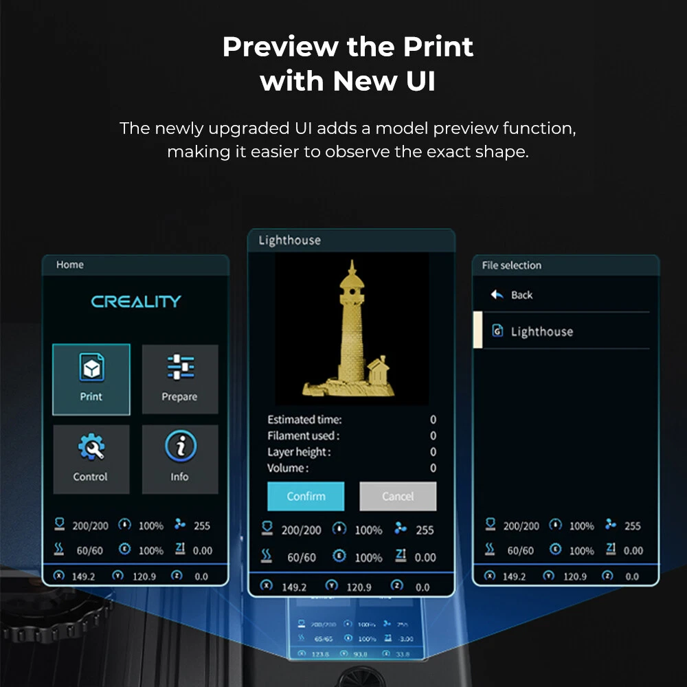 Our used 3D printers are machines that are returned to an online store within 30 days of their initial purchase. This listing is for sale of used (Second-Hand) 3D Printer. 1. This item is 100% Creality 3D Genuine 3D Printer. 2. We offer Creality company after-sale technology support, but we just only provide free after-sales support, no free after-sales replacement. 3. This machine hasn't been repaired or assembled, and we can't make sure which parts are missed or wear, and please note that we don't accept return either. 4. We welcome buyers for bulk orders who are good at 3D printer and buy it at lower prices and long for long-term cooperation, thank you! Used Creality Ender 3 V2 / Ender 3 Pro / Ender 3 3D Printer Disassembled Unrepaired On Big Sale Ender 3 (Printing size 220X220X250mm) Key Features: One-piece structure, Super printing size 220*220*250mm. Safety protected Power supply, reach 110℃ for hotbed in about 5 minutes. The resume printing function can resume prints even after a power outage or lapse occurs. Removable Build Plate to replace reprinting tape and glue, solve warping problem. V1.1.4 Standard Version motherboard comes with thermal runaway protection Note : the board is only the Standard Version, Not-Silent Ender 3 Pro (Printing size 220X220X250mm) Compared to Ender 3, Ender 3 Pro has been upgraded with a Completely removable and flexible magnetic bed and Brand Meanwell power supply. 3D printer DIY kit, easy to assemble, enjoy more fun in the 3D printing world. High precision MK-10 extruder, reduces the risk of clogging and uneven extrusion. The hot table can reach 110 ℃ in about 5 minutes to meet the needs of fast heating and printing. Adopt new soft magnetic sticker, easier to remove the model and solve print warp edge problem. CNC machining Y-axis mounting groove, guarantees precise positioning and more stable structure. Safely protected power supply and resume printing function, you can resume printing after the power supply is restored. Max. 220 * 220 * 250mm printing size, support various 1.75mm printing filaments like PLA, ABS, wood, TPU, gradient color, carbon fiber, etc. Support of operating systems for Windows XP / Vista / 7/8/10, MA C, Linux. Ender-3 V2 Features: 1.Self-developed silent motherboard: Built-in Ender-3 V2 self-developed silent motherboard, which has stronger, faster and more stable anti-interference motion performance, quiet printing and low decibel operation. 2.UL Certified MeanWell Power Supply: Equipped with MeanWell Power Supply, produced by the listed company with mature technology, meeting all needs for fast heating and long time printing. In addition, the power supply is concealed in the machine, which makes it much safer. 3. Effortless Filament Feeding: Ender-3 V2 adds a rotary knob on the extruder, which makes the filament loading and feeding process easier; All-new operation UI system and 4.3" smart color screen greatly improve user experience. 4.Resume printing function: Ender-3 V2 can resume printing from the last saved extruder position after experiencing unexpected power outages, saving your time and reducing waste. Carborundum Glass Platform: Allows the firebox to heat up faster and prints adhere better without warping. Ultra softness even on the first layer. Specifications: Modeling Technology: FDM(Fused Deposition Modeling) Printing Size: 220x220x250mm Filament: PLA/TPU/PETG Working Mode: Online or SD card offline Supported OS: MAC/WindowsXP/7/8/10 Filament Diameter: 1.75mm Slicing Software: Simplify3d/Cura Machine Size: 475x470x620mm Product Weight: 7.8KG Package Weight: 9.6KG Power Supply: Input AC 115V/230V; Output DC 24V 270W Layer Thickness: 0.1-0.4mm Print Accuracy: ±0.1mm Ender 3 Neo Leveling Method Upgrades: CR Touch Auto Leveling With CR Touch, the print height of the 16 points on the build surface can be automatically compensated, ensuring the leveling accuracy and enhancing the printing quality. Large Corrugated Heat Sink, Quick Heat Dissipation A large, corrugated heat sink is added on Ender 3 Neo’s hotend, which effectively enlarges the radiating area, enabling fast cooling down. Carborundum Glass Build Surface The upgraded 3D printer glass plate provides the flattest build surface in the market, ensuring high flatness for the bottom of print, make sure the model can be firmly attached to the surface of the print platform. Resume Printing Function Ender 3 Neo can resume printing from the last recorded extruder position after suffering unexpected power outages. Smooth Feeding Full-metal extruder with greater force enables smooth feeding. No Fear of Power Outage Higher success rate with the resume printing function which saves data upon power outage and then recovers printing once the power is on again. Enhanced Steadiness Alloy steel mold springs give great support to the platform for stable printing. Ender 3v2 Neo (Printing size 220X220X250mm) Key Features: Configure the CREALITY CR TOUCH. Enhanced Accuracy with CR Touch. 16-point automatic print height's compensation, ensuring the leveling accuracy. PC Spring Steel Magnetic Build Plate It's no longer a glass bed. The PC Spring Steel Magnetic build plate has good adhesion, and enables a slight bend to remove the print. 4.3'' Color Knob Screen Model Preview with New UI. The preview function makes model selection visible, allowing for progress' monitoring. Full-metal Bowden extruder is durable. Filaments' loading is easy with a rotary knob. More durable Model Ender-3V2 NEO Leveling Mode CR Touch Build Surface PC Spring Steel Magnetic Build Plate Extrusion Material Full metal Power Supply Brand CREALITY Machine size 438×424×472mm Printing Size 220*220*250mm Display 4.3'' Color Knob Screen Mainboard 32-bit Silent Mainboard Connectivity Micro USB/TF Card Z-axes Single Z Axes Design Resume Printing Yes