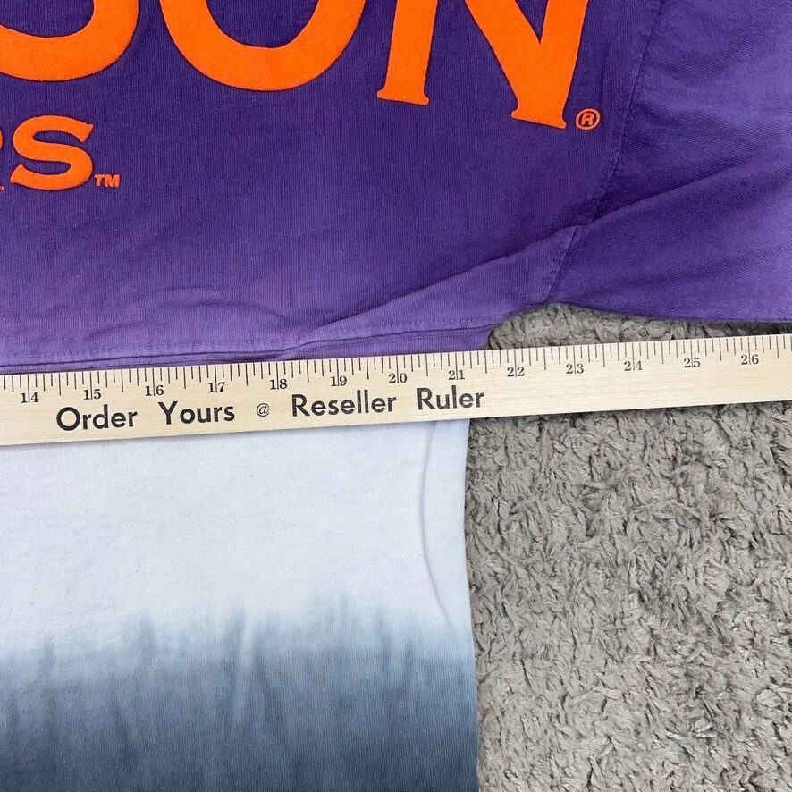 Clemson Tigers Shirt Adult Small Orange Purple Black Ombre Spirit Jersey NCAA Condition: - Overall in good used condition. - No rips, tears, or stains. - Nice graphics. Size: - Adult small. Measurements: - Previous washings may change the sizing written on the tag. - Please refer to the photos above for all measurements. - Please compare our measurements to that of one of your favorite garments. - Please note, item measurements are approximate. All items are bagged and sealed after being photographed, then stored in a smoke free environment to ensure the item is exactly the same as when photographed. I carefully package and ship daily. Feel free to contact me with any questions. All items have been washed per eBay standards & policies.