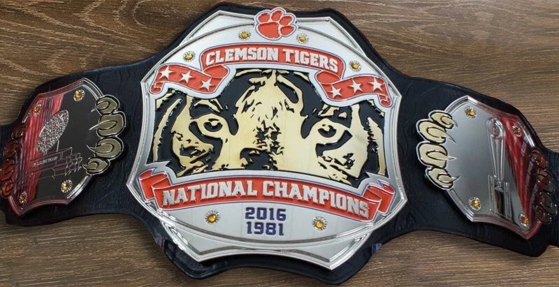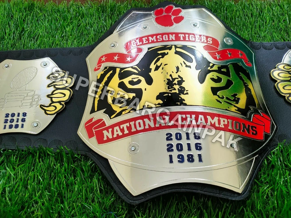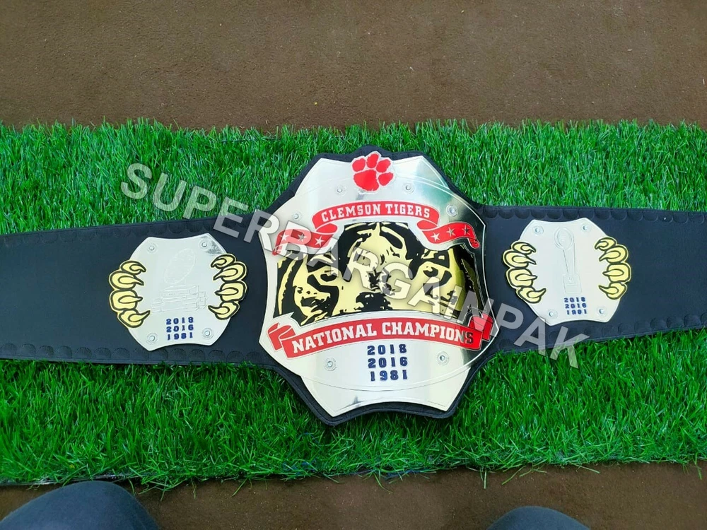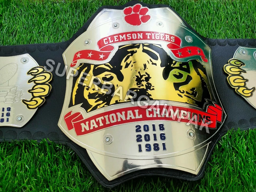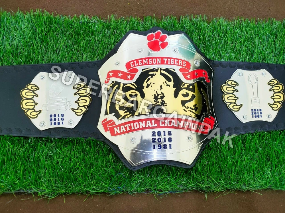 Welcome to our shop ------------------------------------------- We are specialist in manufacturing handmade products:: Our wide range of products include: >>>>Championship Belts WWE | WWF | AEW | UFC | WBC | WCW Product Description ** CLEMSON TIGERS championship belt *** Plate Metal: Brass (Zinc available on request with additional cost) Strap: 100% Leather Largest Waist Size: Fits upto 46'' Belt Length: ~50" Weight: 4.17 lbs | 2.01 Kg Plate Thickness: 2mm (4mm Version available on demand with additional cost) ::The belt is well crafted and manufactured to meet the quality demands of fans:: Get your hands on this marvelous piece now! Note: If you need further details kindly inbox us, we will try to be as responsive as possible. ------------------------------------------- Return Policy: Generally we don't have much complains on our products and we make sure to 100% satisfy our clients. We send the product in well Bubble Wrapped packaging so there is highly unlike chance of getting damaged item. In case there is a damage, we will try to give partial refund or you can ask for full refund within 30 days after returning the belt to origin. NOTE: 1. If you have placed the order by mistake or you have purchased a wrong item then we are not going to refund that. 2. Buyer will pay the shipping fee of returning the belt. ------------------------------------------- Happy Shopping! :)