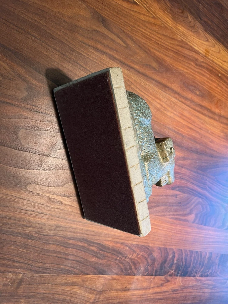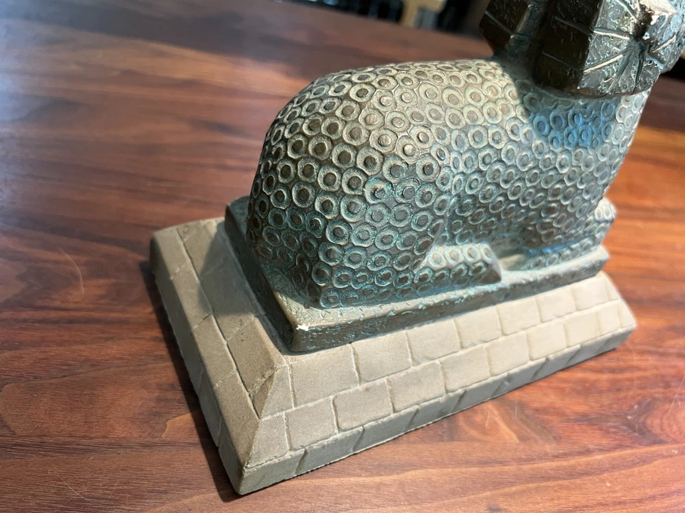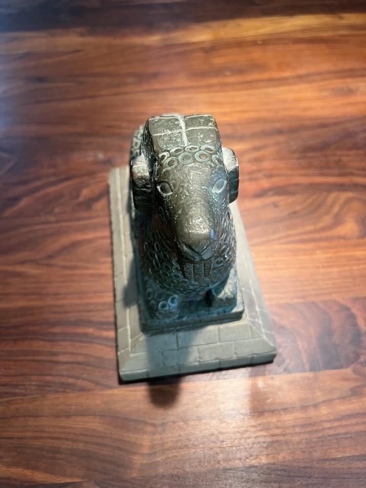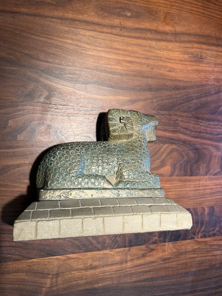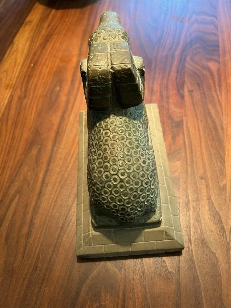 Signed C. Hartwig Ram statue Clay pottery with a bronze style finish No chips. No damage. No repairs. Slight wear on corners very minor. I didn’t want to touch it up. Honest Seller. I’ve had this for a very long time. NYC Artist Goes well with mid century modern eames interiors. Measures 8x7x4.5 inches