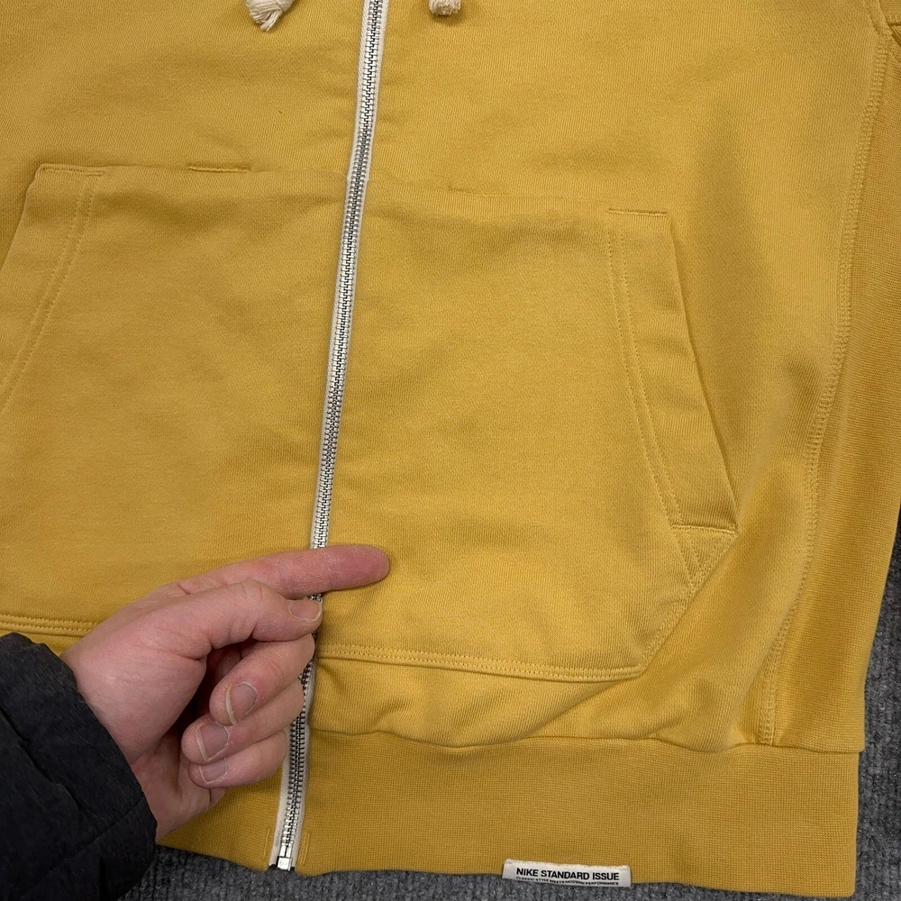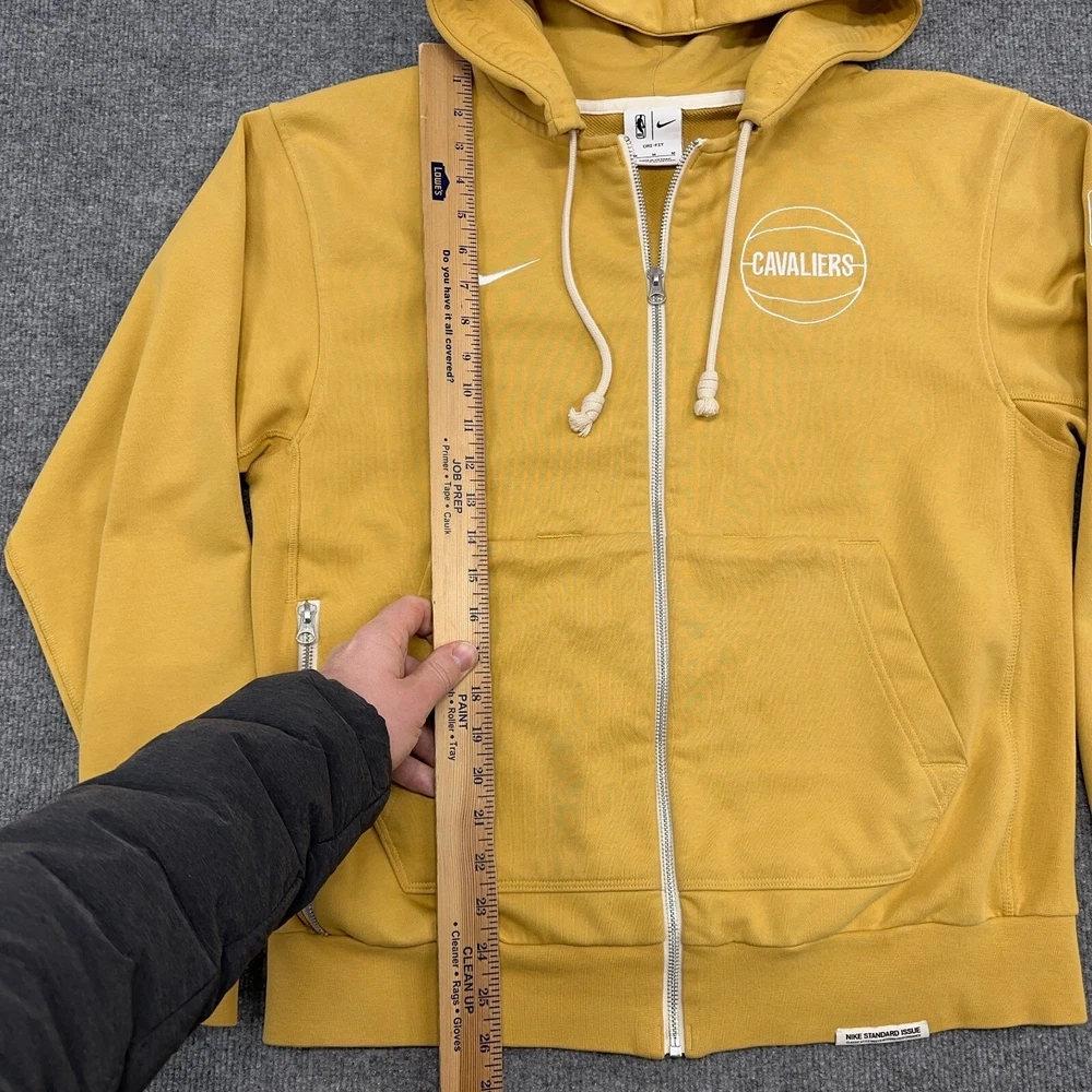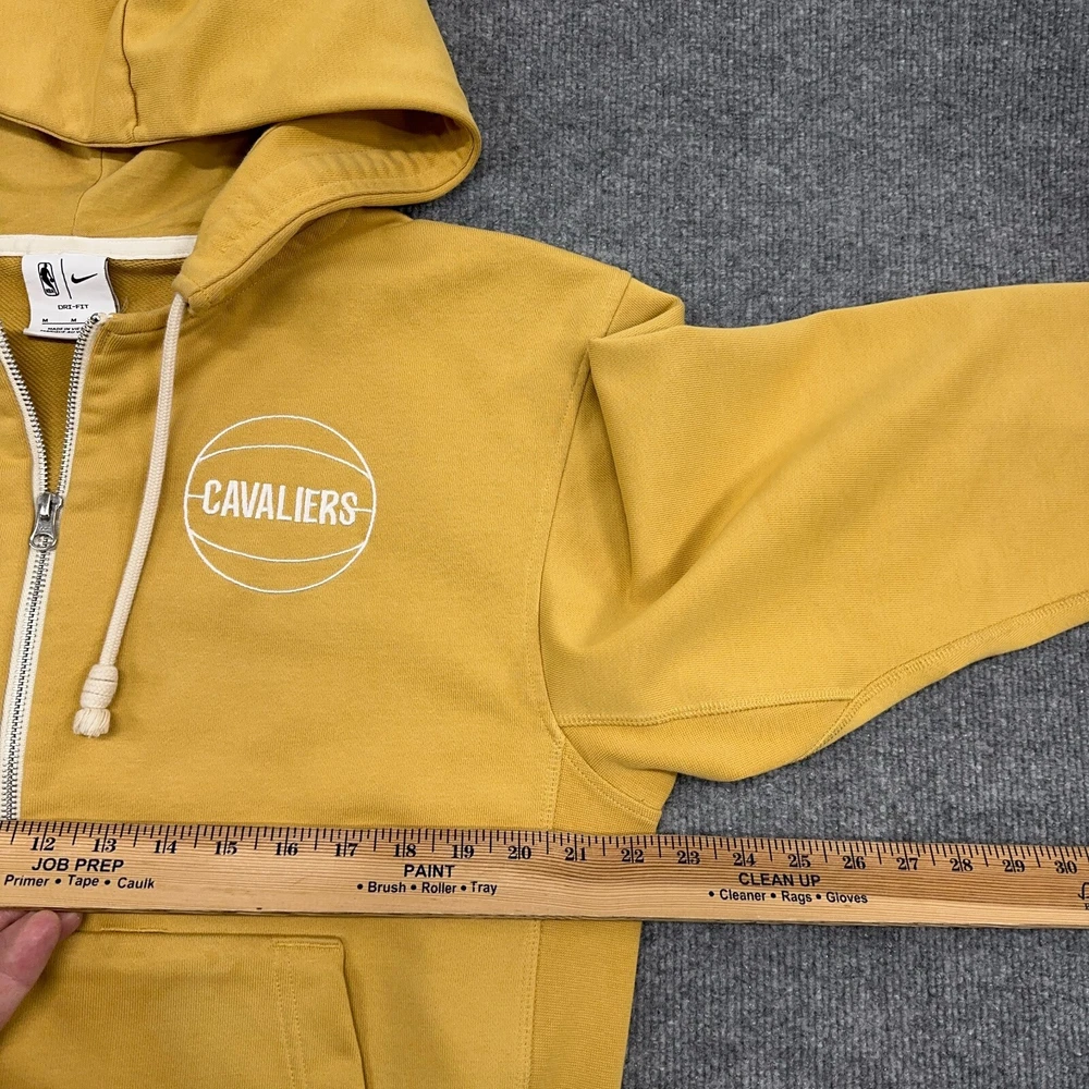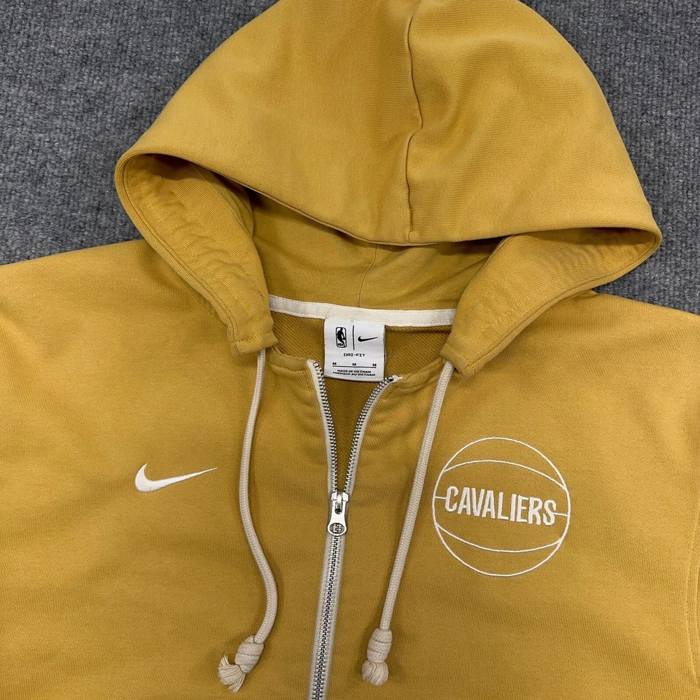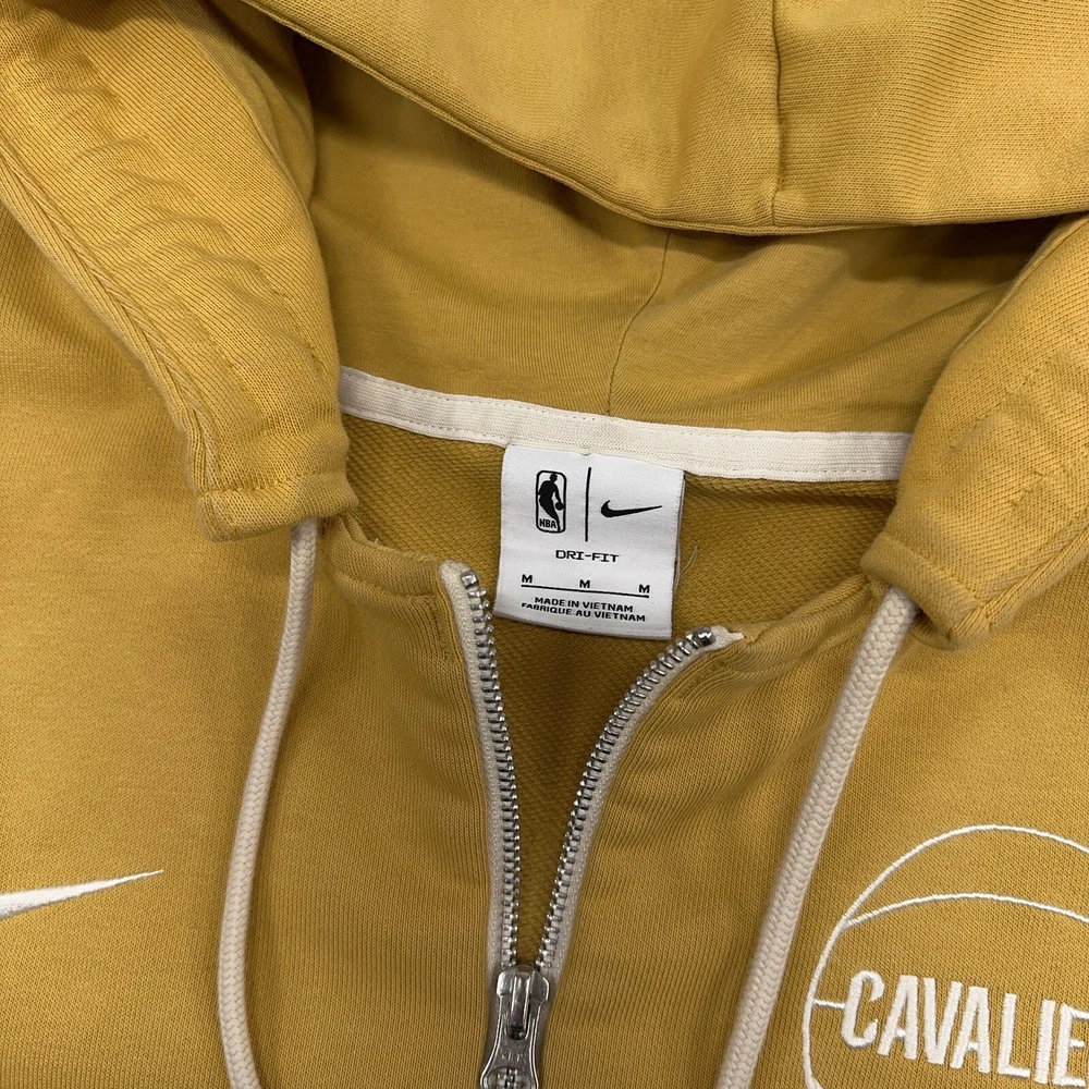Cleveland Cavaliers Nike Hoodie Men M Yellow Standard Issue NBA Dri-Fit Full Zip In good condition other than one very slight discoloration as shown. Please see photos for measurements.