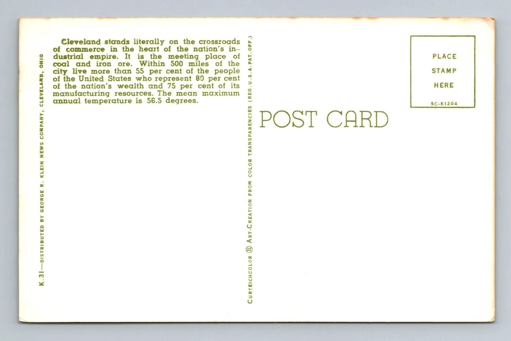 Country/Region of Manufacture: Unknown Region: Ohio Theme: Cities & Towns Country: USA Era: Vintage Original/Licensed Reprint: Original Type: Printed (Lithograph) Subject: Cities & Towns City: Cleveland Postage Condition: See Image Unit of Sale: Single Unit