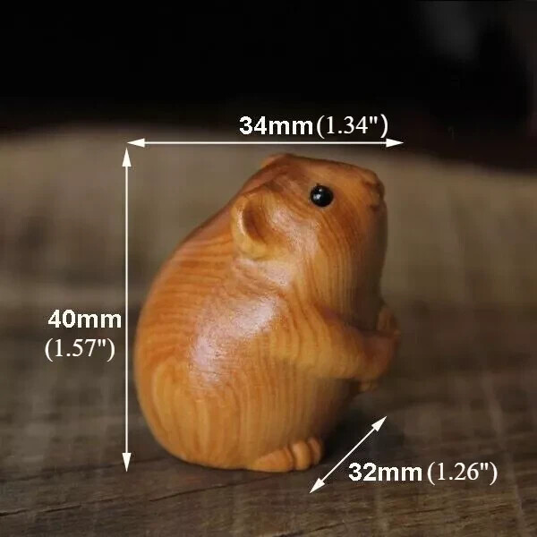 Explore the mystery of the East and appreciate traditional art. This exquisite thuja wood carving ornament - rat, will bring a unique cultural charm to your space. It is not only a decoration, but also a work of art with profound cultural heritage. Product features : Precise size: 32mm (1.26") long, 34mm (1.34") wide, 40mm (1.57") high, small and exquisite, suitable for placement in any corner. Excellent material: Selected from top-grade thuja wood, with hard texture, warm color, and natural wood fragrance. Exquisite craftsmanship: Hand-carved, every knife and every stroke reveals the craftsman's ingenuity, and the details show the truth. Cultural meaning: As the first of the twelve zodiac signs, the rat symbolizes wisdom and agility, and is the representative of wisdom and wealth. Applicable occasions : Personal collection: As a personal collection, it adds an artistic atmosphere to the home. Holiday gift: In special Special festivals, such as the Spring Festival and the Mid-Autu mn Festival, as gifts to convey blessings. Business gifts: As business gifts, show your elegant taste and respect for your partners. Reasons to buy: Unique design: Each wood carving is unique, adding uniqueness to your collection or gift. Cultural value: Thuja wood carving is a treasure of traditional Chinese culture and has high cultural and artistic value. Practical and beautiful: It can be used as a home decoration to enhance the beauty of the space, or as a hand-held piece to play with at any time. Buy this Thuja wood carving mouse ornament now, let it become a bright spot in your life, and bring good luck and wisdom to your every day. Note 1. Due to a variety of factors such as monitor brightness and light brightness, the true color of the item may be slightly different from the picture on the website. 2. Please allow slight deviation of manual measurement data. Contact Us We strive for 100% customer satisfaction! Positive feedback is very important to us. If you have any questions, please feel free to contact us through "Ask Seller a Question". We will respond to your email within 24 business hours.
