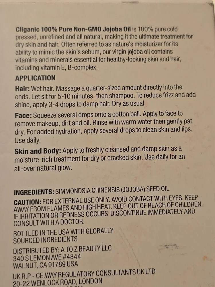 Brand:CliganicIngredients:Jojoba OilGift:Cute,Best,Funny,Girls,Kids,Boy,GirlsModel:Does not applyDepartment:Unisexgtin13:810057560064MPN:Does not applySize:16 Fl Oz (Pack of 1)Features:Cold PressedUPC:810057560064Shipping:Free ShippingType:Does not apply
