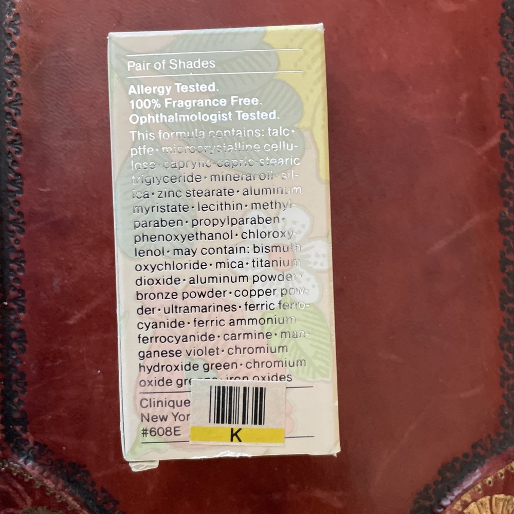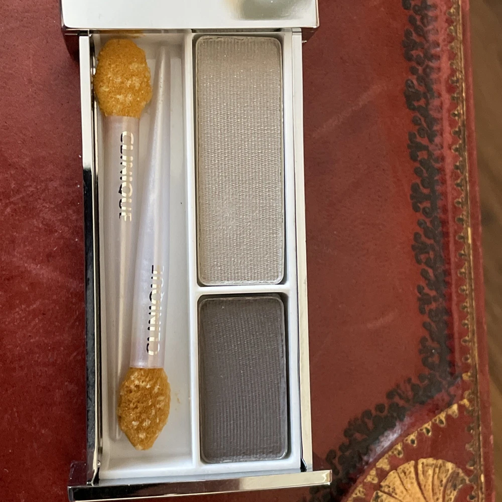 We have available for purchase a Clinique pair of shades eye shadow duo new in box. It has a net weight of .12 oz and 3.4g. Grey on Grey duo comes in the silver slide compact and you will need to replace applicators. There is no expiration date. This had a code of 608E-04. This is new old stock with possibly discontinued colors. We are not affiliated with this company and purchase our items through estates. Please ask all questions before purchasing items. Look carefully at photos as they are an important part of the description. We will provide free priority shipping on these items. Combined shipping is available, please wait for a combined invoice to be mailed to you. There are no returns on these items. Do no bid unless you agree with our terms.