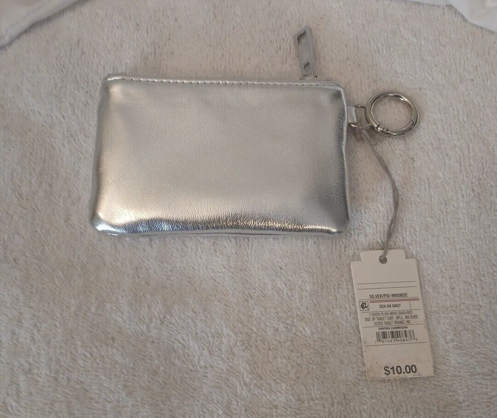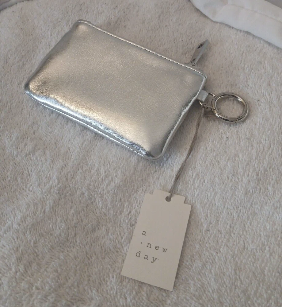 Crafted by A New Day™, this sleek silver wallet is designed with both style and practicality in mind. Its metal theme exudes a contemporary vibe, perfect for the modern woman on the go. The wallet's slim profile allows it to slide into handbags or clutches effortlessly, ensuring that your essentials are always within reach.The wallet features multiple card slots to keep your credit, debit, and ID cards organized, while a secure compartment holds your cash and coins. The easy-to-use clip-on design means you can attach it to your bag or belt loop with a simple snap, making it an ideal companion for daily outings or travel.