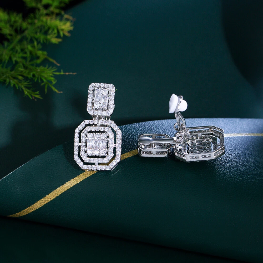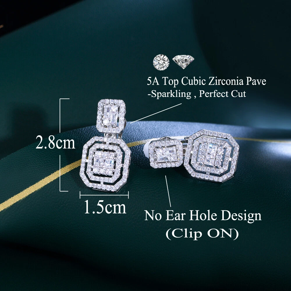 Material: CZ Crystal Country of Origin: China Features: Gorgeous, Elegant, Luxury Main Stone: Cubic Zirconia Item Type: Women Silver Plated Cubic Zirconia Clip On Square Dangle Earrings Shape: Square Dangle Occasion: Anniversary, Birthday, Christmas, Engagement, Graduation, Mother's Day, Valentine's Day, Wedding Main Stone Color: White Type: Earrings Metal: Silver Plated Item Length: 2.8 cm Country/Region of Manufacture: China Closure: Clip-On Main Stone Shape: Baguette Style: Dangle/Drop UPC: Does not apply Suitable for: Brides, Bridesmaids, Mother, Wife, Girfriend, Daughters Base Metal: Brass Brand: Pera Cz gtin13: Does not apply Theme: Women Silver Plated CZ Square Dangle Clip On Non Pierced Earrings Secondary Stone: Cubic Zirconia Color: White