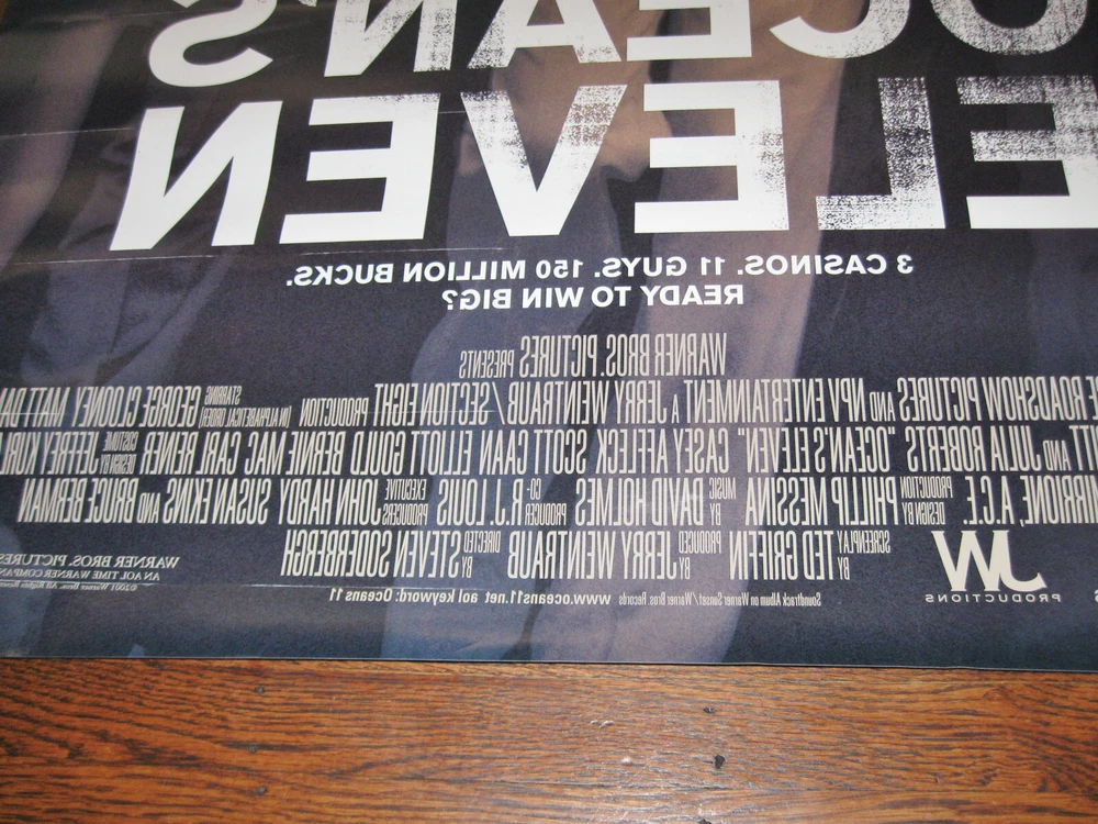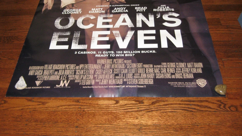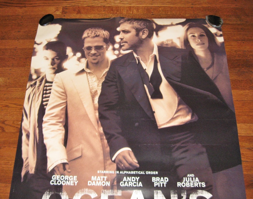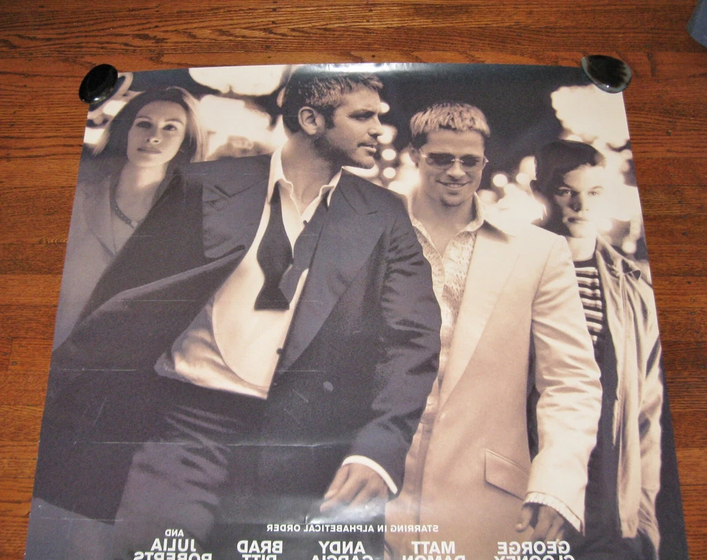 Vintage Reverse Sided Movie Poster Adventure Action 2001 – Ocean’s Eleven -George Clooney Brad Pitt Julia Roberts Matt Damon Andy Garcia “3 Casinos. 11 Guys. 150 Million Bucks. Ready to Win Big?…” · Perfect or your movie room or poster collection, will look in double sided frame. · In good vintage condition, edges show light wear from handling. Measures around 27” wide and 40” tall , will be shipped rolled. CallJannieEbay Helping you find quality modern & vintage fashion, décor, unique gifts & collectibles. Buying pre-owned is environmentally friendly. Discount when your purchase more than one item. You can trust us to provide quality products & service and will highlight noticeable imperfections in the photos. Items come from a pet and smoke free environment. Keep in mind, color may vary slightly depending on viewing device. Items untouched/untested to maintain character and allow your expert hands to clean and restore. Thank you for supporting small businesses and check out others CallJannie treasures for sale.