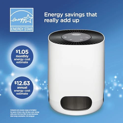 The Clorox™ Tabletop Air Purifier captures 99.97%* of particulates as small as 0.1 microns and reduces viruses and bacteria** so you can breathe easier. The 2 stage 360° filter captures particulates in a pre-filter and True HEPA filter. * Before first use remove Power Adapter from inside the filter. See Use and Care guide for more information. CAPTURES 99.97% OF ALLERGENS AND PARTICULATES AND REDUCES VIRUSES AND BACTERIA. The Clorox Tabletop Air Purifier has True HEPA filtration to capture 99.97% of particles as small as 0.1 microns and a pre filter to capture larger particles. 2 STAGE 360° FILTER: Delivers 360° air purification by capturing allergens and particulates in 2 filter layers. The outside pre filter catches large dust particles and pet hair and the True HEPA filter captures 99.97% of allergens and particulates. IDEAL FOR SMALLER ROOMS. This compact air cleaner is perfect for smaller rooms like the office, dorm, bedroom, den or nursery. The 360° filter pulls in air from all directions to clean rooms up to 5 times per hour when used in a room 80 sq. ft. and 2 times an hour when used in a room up to 200 sq. ft. EASILY CUSTOMIZE TO ANY ROOM OR SCHEDULE: This True HEPA air purifier has 3 speeds to let you customize air care to your needs. The optional timer lets you set air cleaning to your schedule simply choose from 8, 4 or 2 hours of operation. WHISPER QUIET SETTING IS PERFECT AT NIGHT. Get ready for a good night's sleep. Select the low speed for quiet air purification and turn the adjustable night light to bright, dim or off. GENUINE CLOROX FILTERS: Replace the filter every 6 12 months by searching for B09N54QY1R or Clorox 12020 Tabletop Replacement Filter. Maintain optimal performance with True HEPA filtration to capture 99.97% of particles as small as 0.1 microns and a pre filter to capture larger particles.at enter the True HEPA filter. 99.97% effective in capturing particles as small as 0.1 microns that enter the true HEPA filter. Reduction of viruses and bacteria as air passes through the true HEPA filter. Actual % of reduction varies. Does not kill viruses or bacteria. Cleaning effectiveness and filter life vary by air quality. Based on independent CADR testing, when operating on highest fan speed. Suggested room sizes assumes closed room with 8 ft. ceiling Estimated costs assumes usage on the highest fan speed, 24 hours a day, 365 days a year. Average utility rate of $0.12 per KWh. For more information about energy consumption, visit energy.gov Before first use remove Power Adapter from inside the filter. See Use and Care guide for more information. Testing performed by independent third party, LMS Technologies, INC, January 1, 2022