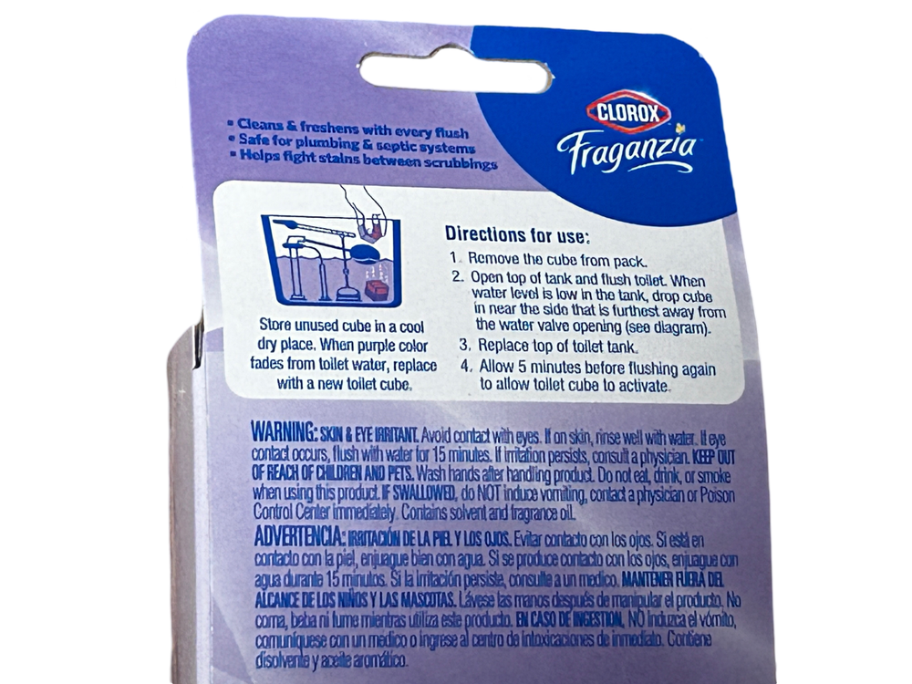 • Bleach free toilet bowl cleaner tablet is applied through toilet tank with flushing each time. • Clorox Fraganzia Gel Toilet Bowl Cleaner tablet keeps toilets clean and fresh after every flush. • The cleaner tablet helps prevent bad smells from toilet continuously. • Each tablet is 1.76 oz, neutralize odors and providing a long-lasting fragrance. ! NOTE: Please read the instructions carefully on the label before use.