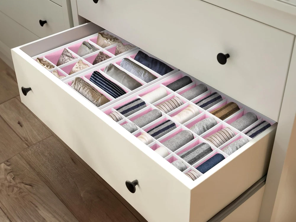 Menu Other Items Feedbacks About Us Contact Us Add To Favorites Closet Underwear Organizer Drawer Divider 4 Set, Pink Good for organizing your lingerie, socks, underwear when you finish laundry and easy to access them while you need it. Made with non-woven fabric The item includes 4 bins: 6 cell(scarves, ties), 8 cell(underwear, briefs, ties), 7 cell(bra), 24 cell(socks) Dimension:12" X 6" X 3.5"H for 6 cell and 8 cell bins Dimension:12" X 12" X 3.5"H for 7 cell and 24 cell bins Product Description Good for organizing your lingerie, socks, underwear when you finish laundry and easy to access them while you need it. Made with non-woven fabric. Drawer Walking Closet Standard Closet Shelves Rack Great Organizer for Drawer and Closet Simple Houseware Closet Organizer Series Add to Cart Add to Cart Add to Cart Add to Cart Add to Cart Add to Cart Customer Reviews 4.5 out of 5 stars 61,134 4.7 out of 5 stars 7,517 4.5 out of 5 stars 1,747 4.6 out of 5 stars 11,137 4.6 out of 5 stars 11,137 4.5 out of 5 stars 591 Price $13.87 $ 13 . 87 $14.97 $ 14 . 97 $9.97 $ 9 . 97 $9.97 $ 9 . 97 $14.97 $ 14 . 97 $23.47 $ 23 . 47 Divider ✔ ✘ ✘ ✔ ✔ ✘ Bins 4 6 4 2 3 12 Size 4 3 2 1 2 3 For Socks ✔ ✘ ✘ ✔ ✔ ✘ For Clothes ✘ ✔ ✔ ✘ ✘ ✔ Item Specification Item Shape Rectangular Unit Count 4 Count Number of Compartments 45 Number of Items 4 Mounting Type surface mount Color Pink Mounting Type surface mount Item Weight 0.35 Kilograms Material non woven fabric Maximum Weight Recommendation 6 Pounds Specific Uses For Product Socks,Underwear Item Weight 0.35 Kilograms Product Dimensions 6"D x 3.5"W x 12"H Shape Rectangular Number of Compartments 45 Unit Count 4 Count Special Feature Portable Item Dimensions D x W x H 6"D x 3.5"W x 12"H Finish Type Lacquered,Brushed,Powder Coated,Painted Features Portable Dimensions Shipping Returns Additional Info Product Dimensions: 3.5 "h x 6.0 "h x 12.0 "h. Weight: 0.35 kg Fast shipping is very important for us. Our standard shipping service is FREE. Your order will be shipped within 1-3 business days upon full payment received. Most items are delivered within 3-5 business days, however, please allow 3-10 business days. We are shipping only to USA. We only ship to the confirmed Paypal address. We reserve the right to cancel any order for any reason at any time. We are not responsible for undeliverable addresses. We offer a 30 day return policy from checkout winning date. Your satisfaction is guaranteed! If for any reason you are unhappy with your item, just return it within 30 days for a full refund, minus shipping cost. Please contact us prior to initiating a return so that we can issue you a refund authorization. Items defective upon receipt must be packaged in their retail packaging as if new and returned with a detailed description of the problem. Return shipping fees are not refundable. We reserve the right to decline any returns if the above guidelines are not followed. All of our items, unless otherwise stated, will only run on 120 volts. Please check to make sure your country complies with these specifications. If you have a problem or question regarding your transaction please contact us before leaving any type of feedback. We will work with you to resolve any problem you may have.