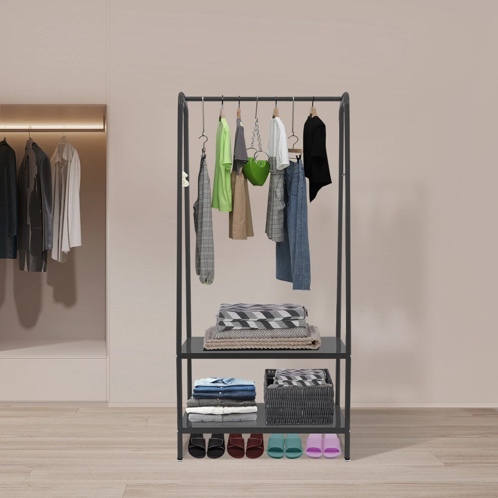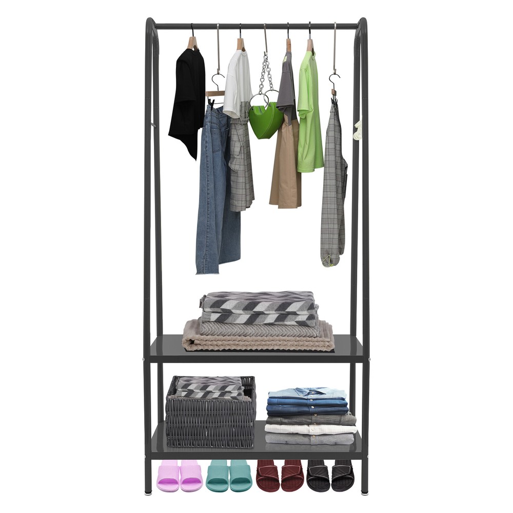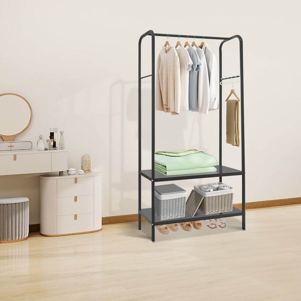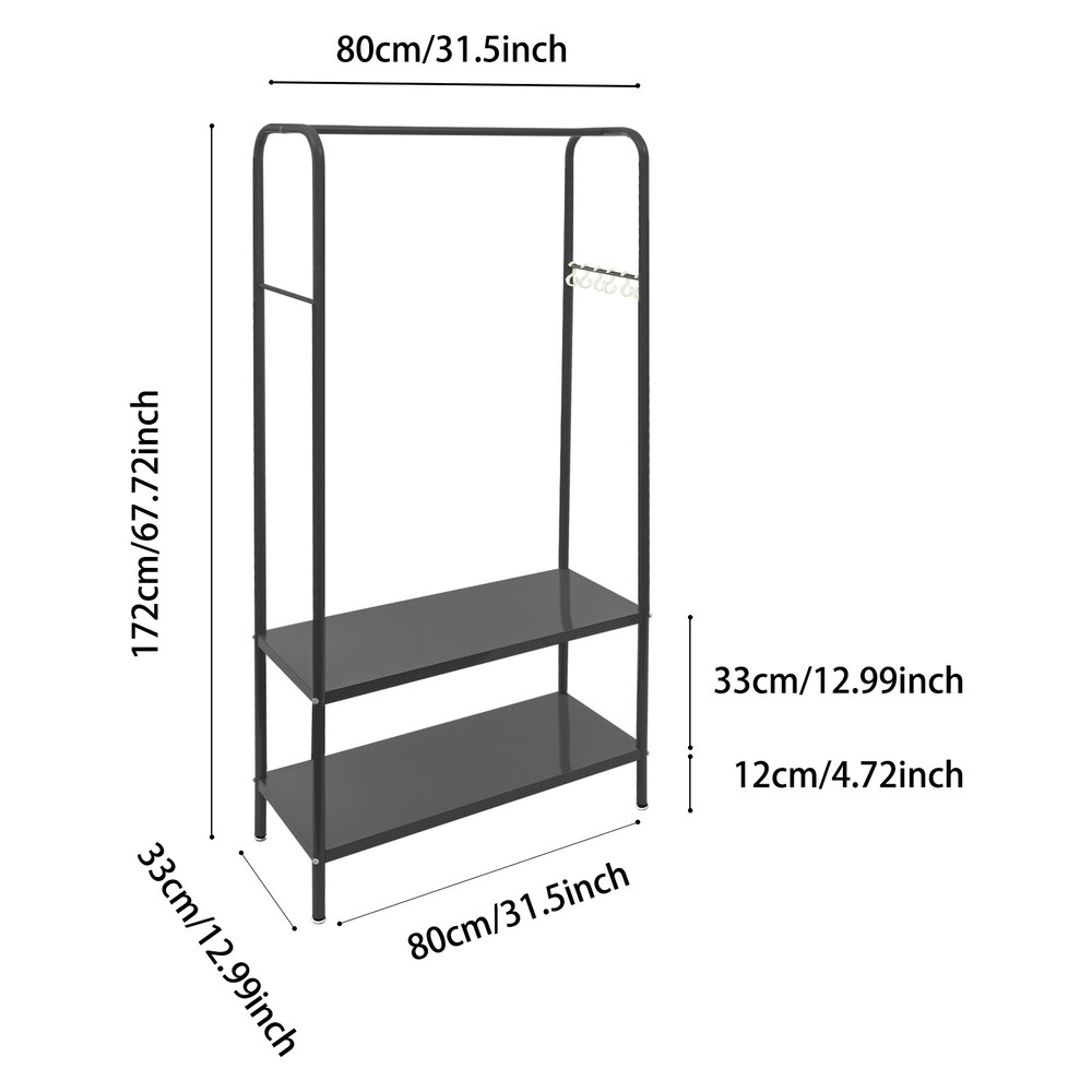 Clothes Rack with Bottom Shelves, Home Clothes Rack, Standing Clothes Rack New Description A sturdy and exquisite clothes rack keeps your clothes in order and adds charm to your store or bedroom. Our product is made from high-hardness carbon steel and adopts a rectangular construction for high stability and load-bearing capacity. With its simple and nice appearance, this rack will be your ideal assistant in daily life! Key Features Sturdy and Durable: It adopts high-class galvanized carbon steel with electrostatic spraying and high-temperature baking paint processes to make this product high-strength, rust-resistant and not easy to deform, ensuring long service life. Thoughtful Design: The appropriate height (67.72 inches) makes your coat drape properly and reduces the wrinkling of clothes. The open design shows clothes elegantly and allows you to access/hang clothes faster and easier than traditional closets. Large Storage Space: The horizontal bars on the top and sides, as well as 6 detachable hooks, allow you to hang hats, bags, scarves, coats, costumes, dresses, suits, and more for your daily needs. The two-tier shelves allow you to place boxes, shoes, heels, and even small potted plants, fully improving space utilization. Excellent Load Capacity: With a rectangular structure, thickened tube and edge, and high-strength material, it can bear the weight of 66-110 lbs, which allows for more clothes to be hung. Neat Space: It will keep your bedroom or entrance clean and tidy without piles of clothes, while also displaying clothes distinctively and beautifully, making it a great addition to organizing your home. Nice Decoration : The simple shape design and smooth lines highlight the geometric beauty, so it can be easily integrated into a variety of decoration styles and the black color gives your dress a sleeker texture. Simple Installation: With complete accessories, simple construction and an English installation manual, you can install it all by yourself and enjoy the installation process. Easy to Clean: Thanks to the simple construction and smooth surface, you can easily wipe it down with a damp rag and keep it shiny! Details Round Edges: The rounded edges and corners are not only more comfortable to touch but also care for your clothes and enhance the safety of use. Adjustable Pads: There are 4 adjustable pads on the bottom to adapt to uneven floors, ensuring stability when the product is standing and also avoiding scratches on the floor. Application It is suitable for hallways, entryways, bedrooms, bathrooms, closets, laundry rooms, garages, boutiques, shops, clothing stores, or balconies for hanging clothes, suits, scarves, bags, etc. Specification Color: Black Style: Modern Shape: Rectangular Material: Galvanized Carbon Steel, Iron Assembly Required: Yes Mounting Type: Floor Standing Process: Electrostatic Spraying, High -temperature Baking Paint Number of Hooks: 6 Load Bearing: 30-50kg/66-110lbs Gross Weight: 5.2kg/11.46 lbs Net Weight: 4.94kg/10.89lbs Tube Diameter: 25mm/0.98in Thickness of Shelf: 0.4mm/0.016in Thickness of Folded Edge: 28mm/1.1in Package Size: 93*34*6.5cm/36.61*13.39*2.56 in Product Size: 80*33*172cm/31.5*12.99*67.72 in Hanging Rod Length: 80cm/31.5in Shelf Spacing: 33cm/12.99in Bottom Tier Height: 12cm/4.72in Package Included 1* Clothes Rack 6* Hooks 4* Adjustable Pads 1* English Installation Manual Other Accessories for Use Payment Delivery details Terms of sales About us Contact us Payment We accept ebay payment 。 Fees such as import duties, taxes are not included in the item price or shipping costs. These charges are the buyer's responsibility. Delivery details Shipping: 2-9 working days to: USA Terms of sales We maintain high standards of excellence and strive for hundred percent customer satisfaction. Feedback is very important to us. We hope that you contact us immediately before you give neutral or negative feedback, so that we can address your concerns. It is impossible to address issues if we do not know about them! About us Your satis faction is our ultimate goal. We work hard to earn your trust and future business. Our certified technicians have tested each item before shipping. The unit comes with 1 year limited warranty on all manufacturing defects. a) If you receive a defective item, you may return it or ask for a discount. Please contact us within 14 days after you receive the package. b) What you returned must be intact and in its original packaging as re? u. Customer is responsible for shipping costs of the returned item. c) We will cover the cost of shipping back t with the shipping rate indicated in the registration page. We will send you a new unit or refund the full payment you paid. Thank you. Contact us Business Hour Business Hour: Monday To Friday: 8:30 AM to 5:00 PM (Beijing China time) Due to time zones, our reply to your questions may not be immediately. But within above working time, we will reply your email within 24 hours. If it's non-workdays, please kindly be patient and wait till Monday. Please contact us with ebay message. Please feel free to contact us if you have any questions. Monday To Friday: 8:30 AM to 5:00 PM (Beijing China time) Due to time zones, our reply to your questions may not be immediately. But within above working time, we will reply your email within 24 hours. If it's non-workdays, please kindly be patient and wait till Monday. Please contact us with ebay message. Please feel free to contact us if you have any questions. Country of Origin Unknown Feature * Great Durability,Exquisite Appearance,High-quality Manufacturer Warranty 3 Years Brand Unbranded Type Clothes Rail Material Galvanized Carbon Steel, Iron Mounting Free Standing Color Black Style Modern