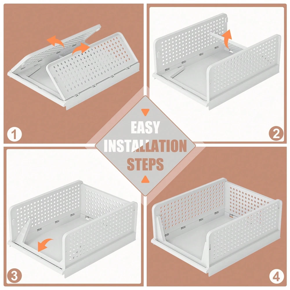 [Multi-function] Stackable storage box, suitable for storing T-shirts, towels, clothes, toys, snacks, books, documents and other items. Suitable for wardrobe, dormitory, bathroom, kitchen, living room, office. Each box measures 16.6 "L x 13.1" W x 7.3 "H. [Maximize storage space] The closet organizer is stackable, keeping the home vertical space organized. Freely stack and adjust the number of wardrobe drawers to best fit your wardrobe or storage space. The collapsible design of the locker allows it not to take up space when not in use, which also helps to save more space. [Slide design] The slide design at the bottom, even in the most internal, can also be convenient to pick items. Don't worry about messing up anything on it. This is a good solution, especially for stacking clothes for storage. [Durable] The wardrobe organization frame is made of high quality and strong PP plastic, durable, beautiful in shape and durable. The clothes organizer is easy to clean and requires only a simple wipe. [Please note] : Stackable baskets do not slide out completely like drawers. If you need to pull it out, lean it against the wall, holding the drawer in place with one hand and pulling out only the top of the unit with the other. Color: White Material: PP