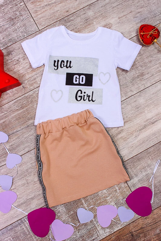 Material: Jersey General size: 98-116 Seazon:Summer Pattern:Graphic Print Clothing decoration:no decoration Size: 98, Bust: 56cm, Sleeve Length: 9cm, Length: 37cm, Hips: 58cm, Pant length: 27cm, Height: 98cm, Shoulders: 28cm, Waist: 58cm Size: 104, Bust: 58cm, Sleeve Length: 9cm, Length: 39cm, Hips: 62cm, Pant length: 30cm, Height: 104cm, Shoulders: 29cm, Waist: 60cm Size: 110, Bust: 60cm, Sleeve Length: 9cm, Length: 41cm, Hips: 64cm, Pant length: 31cm, Height: 110cm, Shoulders: 30cm, Waist: 62cm Size: 116, Bust: 62cm, Sleeve Length: 9cm, Length: 43cm, Hips: 66cm, Pant length: 34cm, Height: 116cm, Shoulders: 31cm, Waist: 64cm The girl's outfit (skirt + T-shirt) is the perfect combination for creating a stylish look. It consists of a skirt and a short-sleeved T-shirt that look great together but also easily combine with other wardrobe elements. Made in pastel shades, the set is complemented by shiny side stripes on the skirt and a stylish print on the front, giving it an elegant touch. This outfit is suitable for festive outings, walks, or school events, allowing your girl to look stylish and fashionable in any situation!