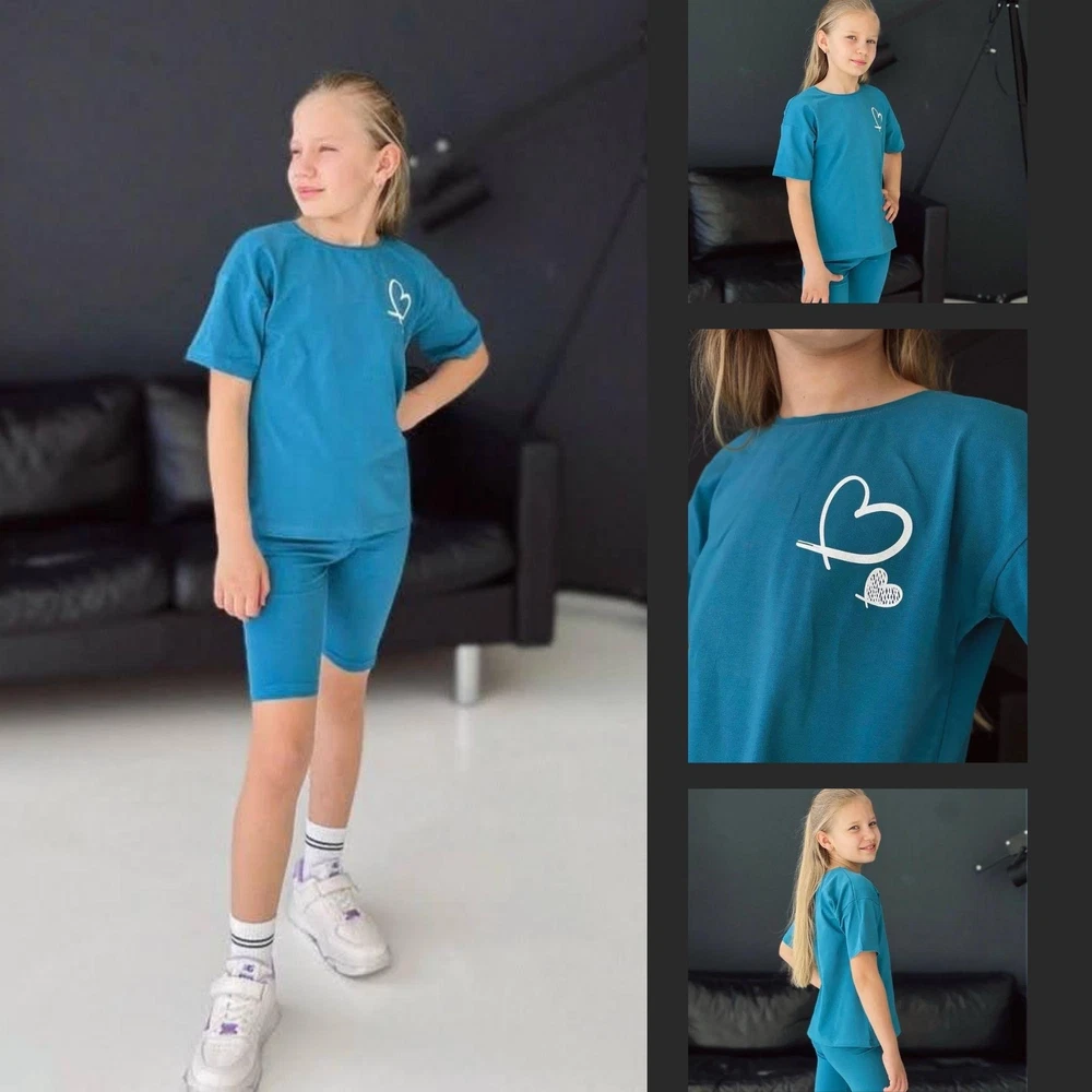 Material: Jersey General size: 110-134 Seazon:Summer Pattern:Graphic Print Clothing decoration:no decoration Size: 110, Bust: 70cm, Top Length: 43cm, Hips: 54cm, Pant length: 31cm, Height: 110cm Size: 116, Bust: 72cm, Top Length: 45cm, Hips: 56cm, Pant length: 33cm, Height: 116cm Size: 122, Bust: 74cm, Top Length: 47cm, Hips: 58cm, Pant length: 35cm, Height: 122cm Size: 128, Bust: 76cm, Top Length: 49cm, Hips: 58cm, Pant length: 36cm, Height: 128cm Size: 134, Bust: 80cm, Top Length: 51cm, Hips: 60cm, Pant length: 39cm, Height: 134cm Introducing our charming girl's set featuring a trendy t-shirt and shorts combo! Perfect for your little fashionista, this set is crafted from high-quality materials for durability and comfort. Whether she's playing outdoors or attending a casual gathering, this set offers both style and practicality. With a variety of sizes and colors available, finding the perfect fit for your girl is easy. Elevate her wardrobe with our girl's set today!
